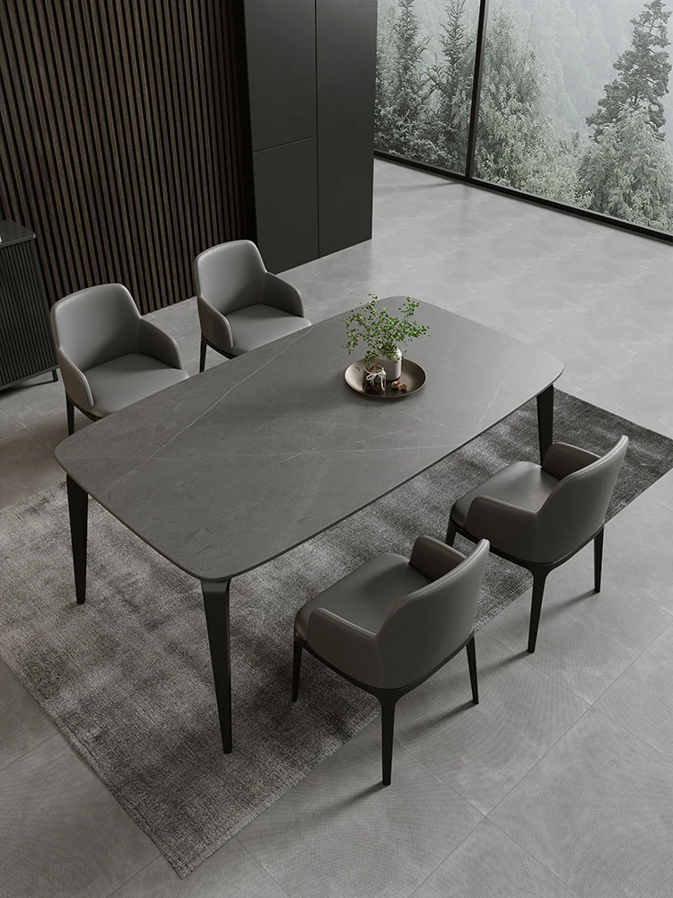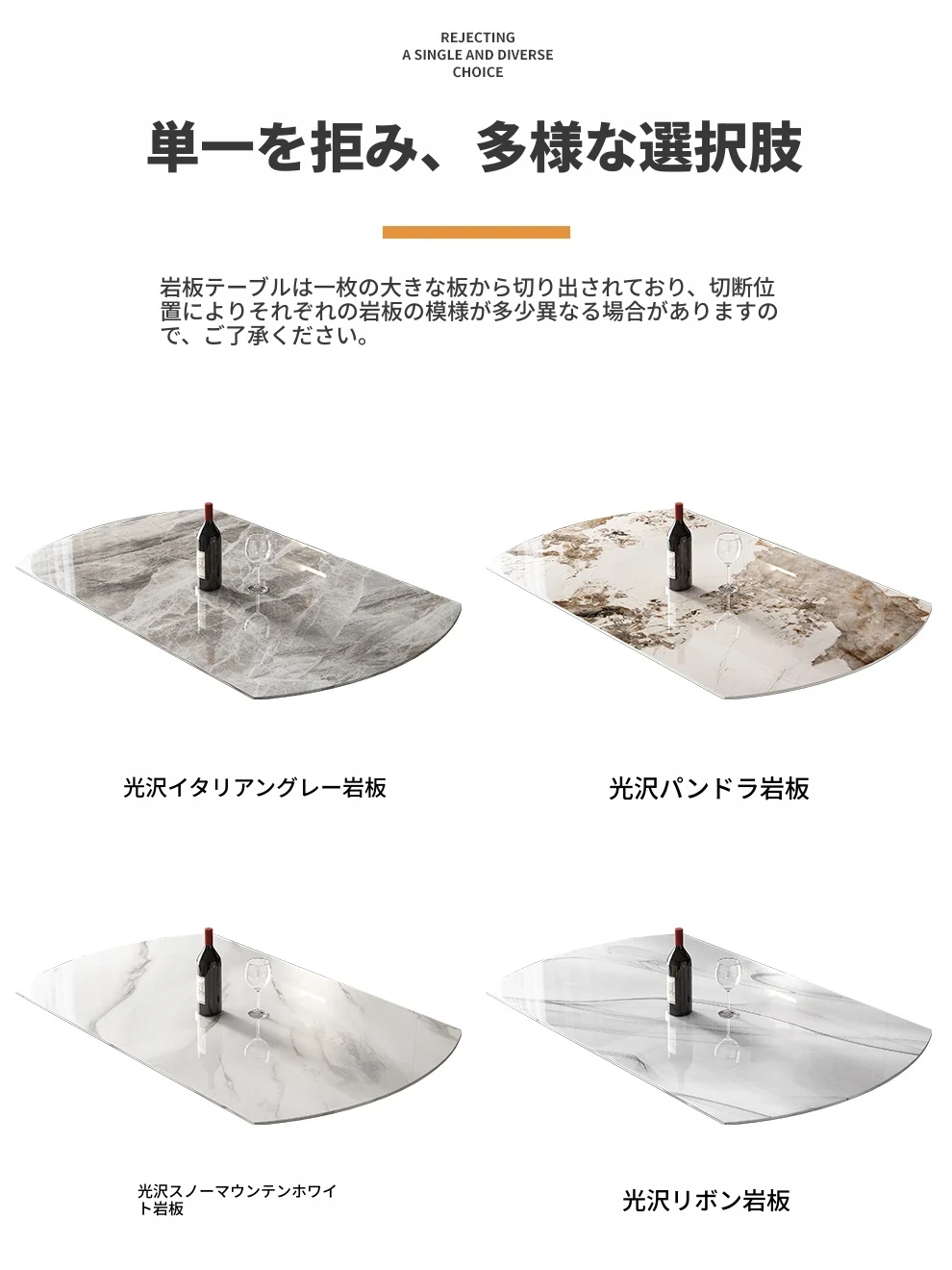 モダンでシンプルな小型家庭向け高級感あふれる岩板無垢材ダイニングテーブルセット- 伸縮折りたたみで自由自在に形が変わる!