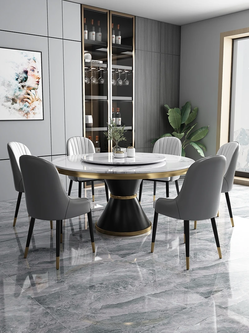 豪華なデザイン!軽量岩板製ダイニングセット:回転トレイ付き円形モダンテーブル、IH対応、全実木構造