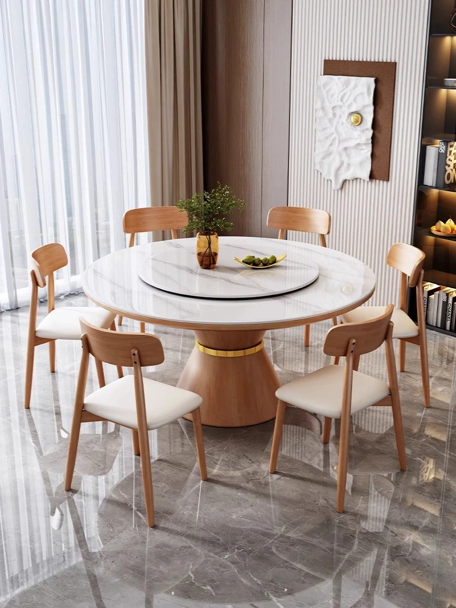 高級感漂う!モダンでシンプルな家庭用岩板ダイニングセット - 高級天然大理石と無垢材を使用したラウンドテーブル 디자인、ラグジュアリーな雰囲気で素敵な食事のお時間を。