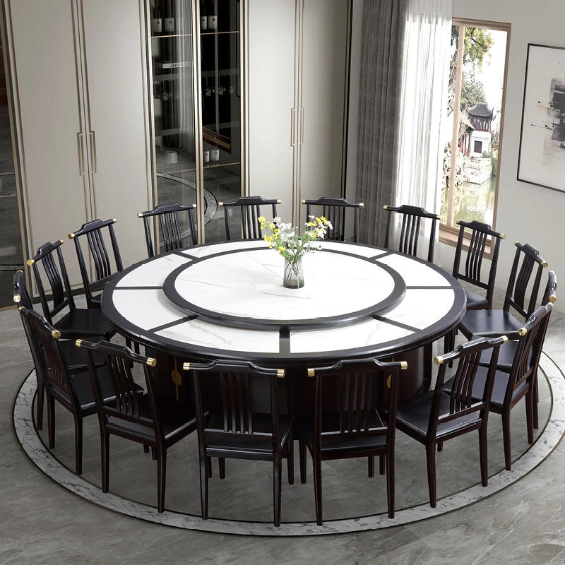 新中式ホテル用ダイニングテーブルセット - 本格木製回転テーブル付き、豪華レストランや個室で18~20人対応の電動大型円卓!