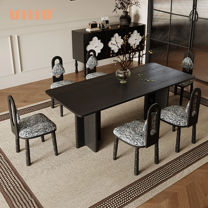 ULLLO 南洋レトロ風オシャレなブラックウッドダイニングテーブル - フレンチスタイルの円卓、家庭用やカフェに最適なユニークな八仙テーブル