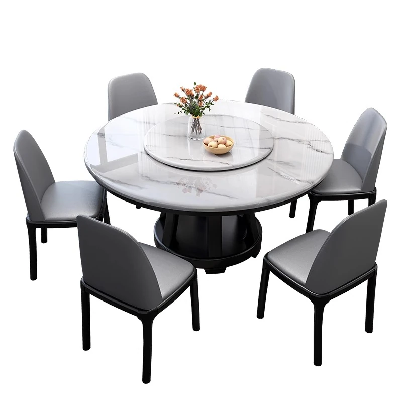 シンプルモダンな回転式大理石ダイニングテーブルセット - 異次元の優雅さと機能性を体感!