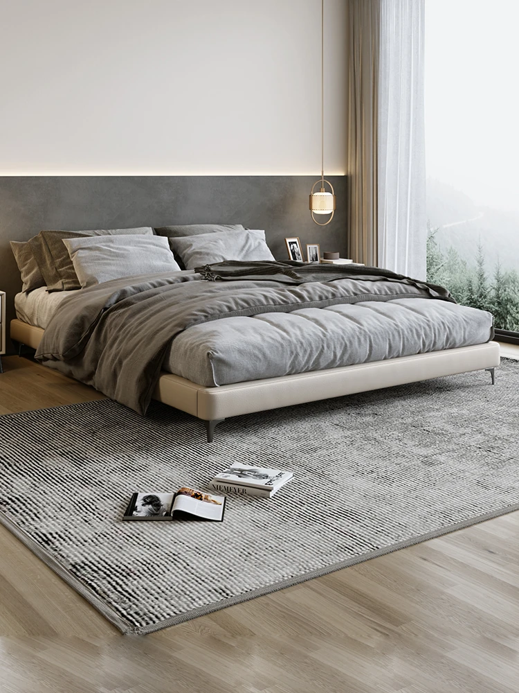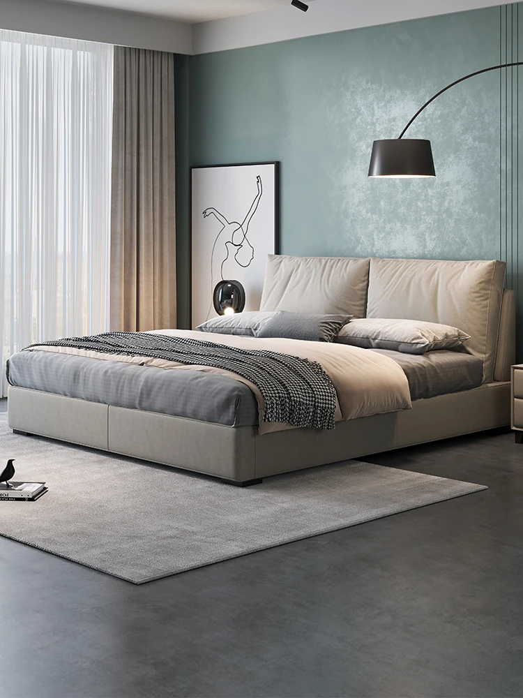 【北欧侘寂風】モダンミニマルなテクノロジー生地ファブリックベッド - イタリアン軽高級感、ふわふわで快適な主寝室用ダブルベッド