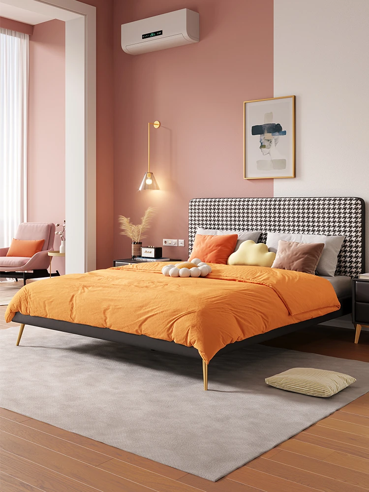 象の耳ベッド・高級モダンな布張りベッド:主寝室にぴったりの羽毛ソフトパッケージ、高品質トレンド素材使用!