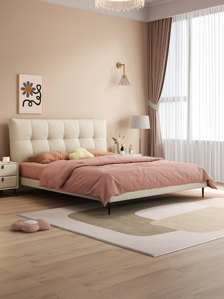 2022年新作|イタリアンミニマル布製ベッド:モダンでシンプルなスタイルのダブルベッド、1.8mの高級感あふれるデザイン、柔らかな触感で快適な睡眠をサポート