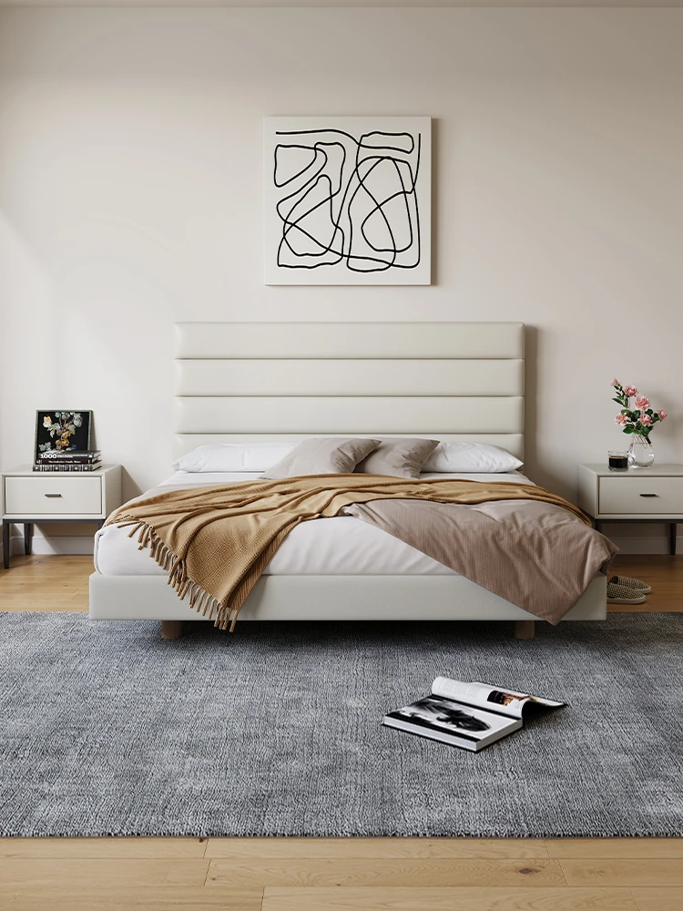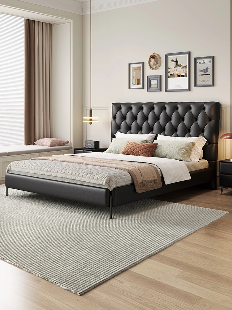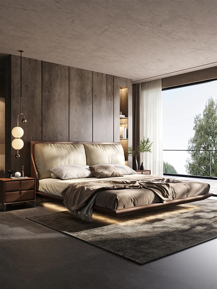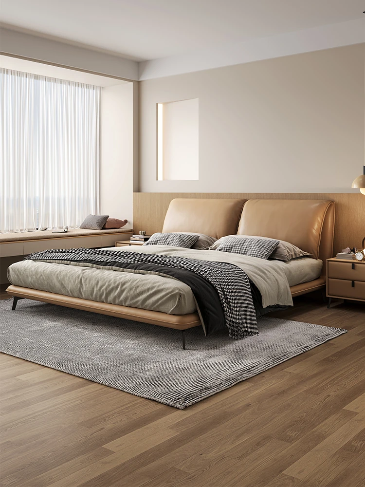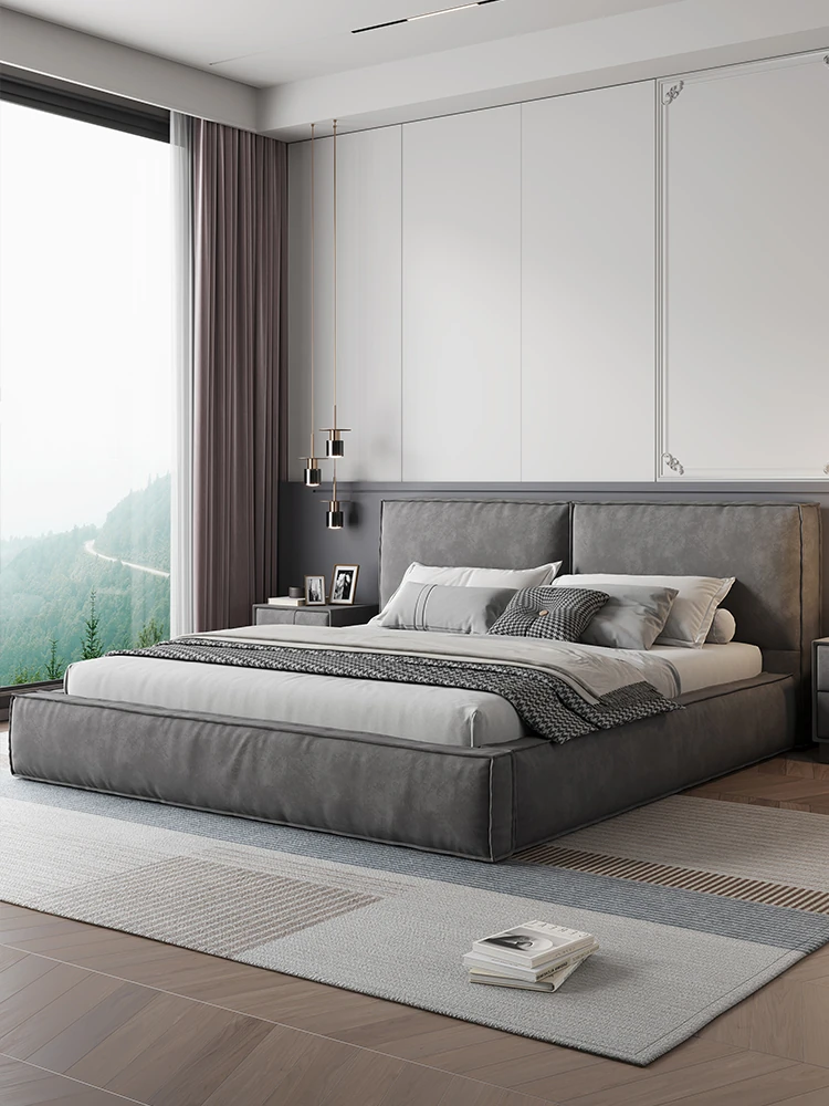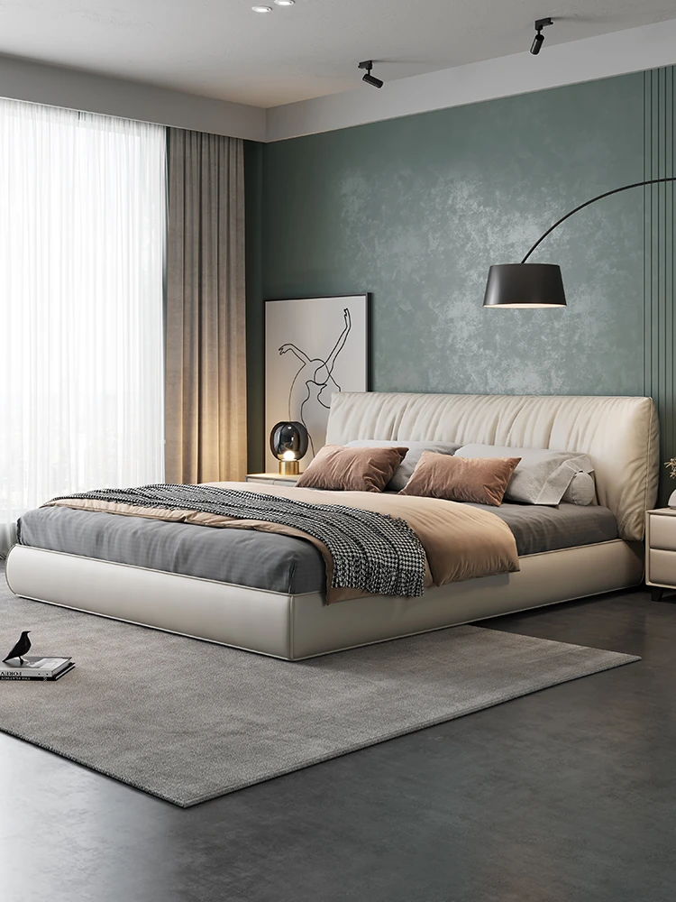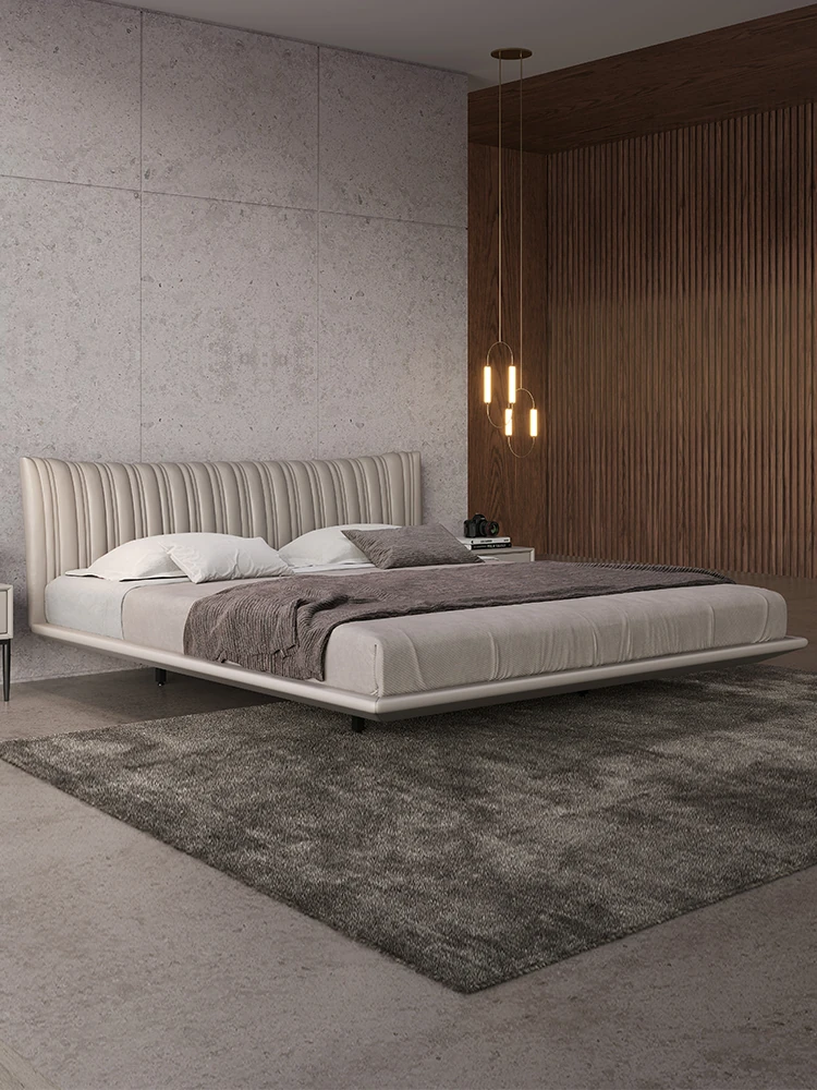 Italian Minimalist Genuine Leather Bed - Modern Simple Style for Couples, Nordic Luxury Master Bedroom First Layer Cowhide Designer Bed