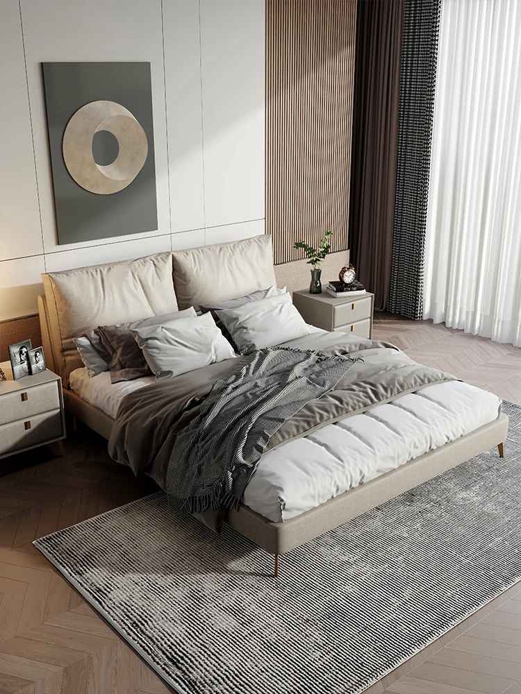Luxurious Modern Fabric Bed – Minimalist Nordic Design for Master Bedrooms – Trendy Italian Wabi-Sabi Style