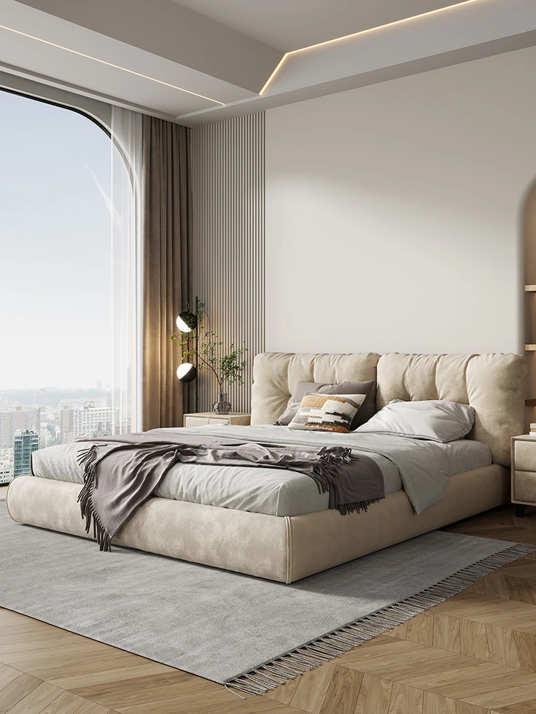 Italian Chic Cloud Technology Fabric Bed - Modern Minimalist Freestanding Storage Design, Trendy Wabi-Sabi Nordic Style for Luxurious Comfort