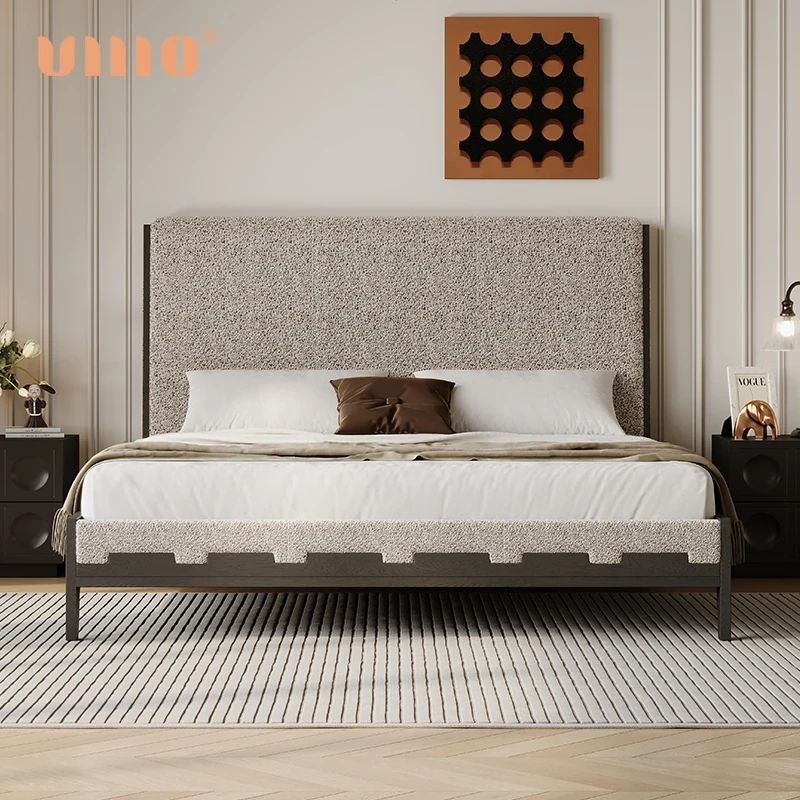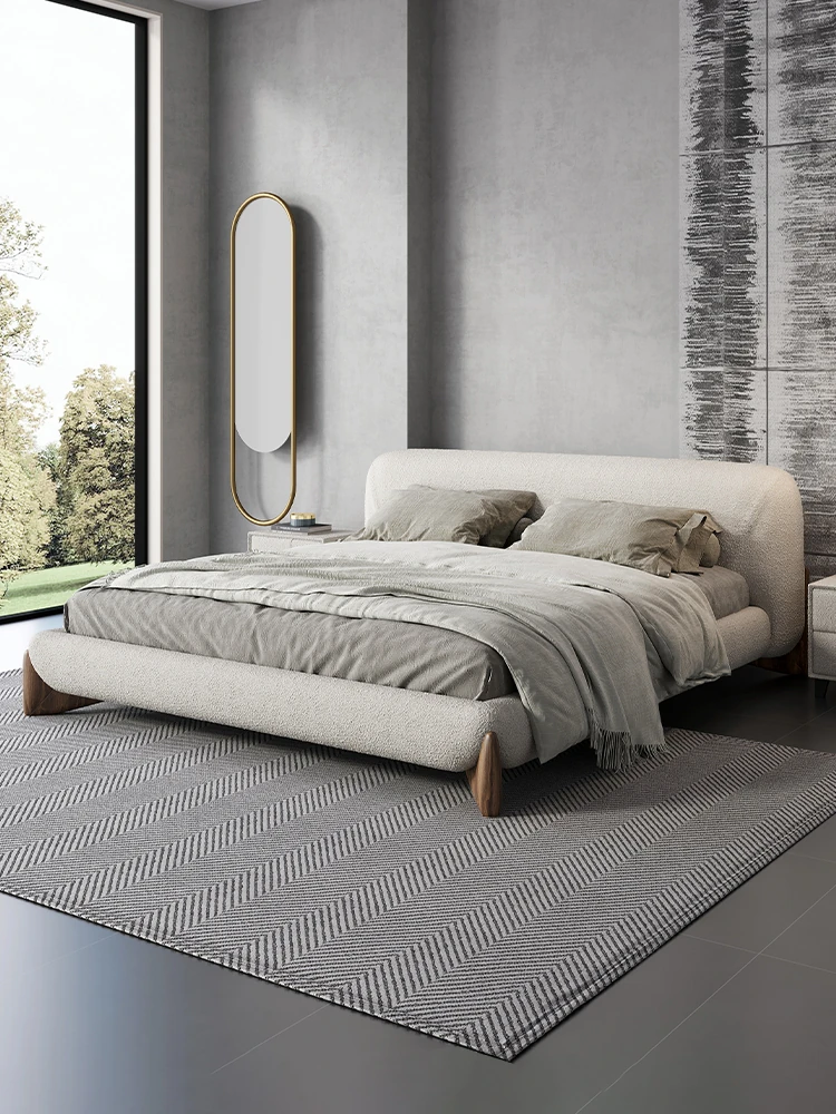 Cozy Lambswool Wabi-Sabi Inspired Modern Minimalist Upholstered Double Bed – Chic Technology-Driven Nordic Design for Trendy Ambiance