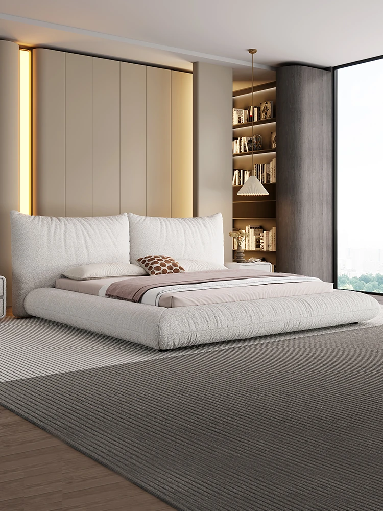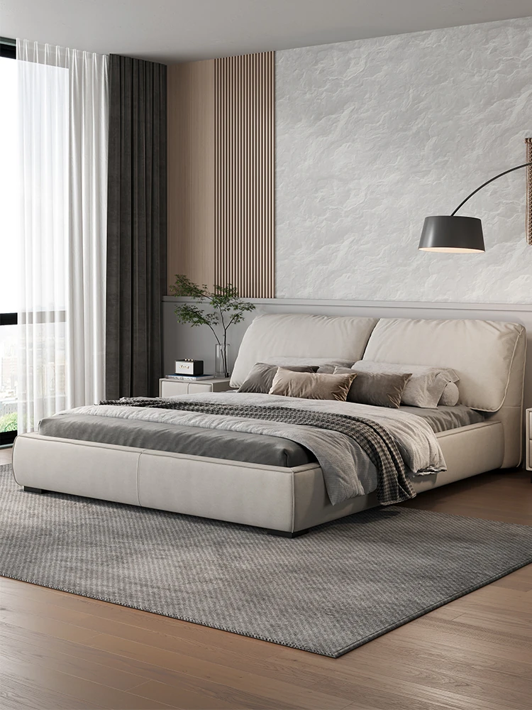 Cloud Puff Cream Bed - Stylish Modern Genuine Leather Storage Bed for Master Bedroom, Italian Minimalist Double Bed, Trendy Design