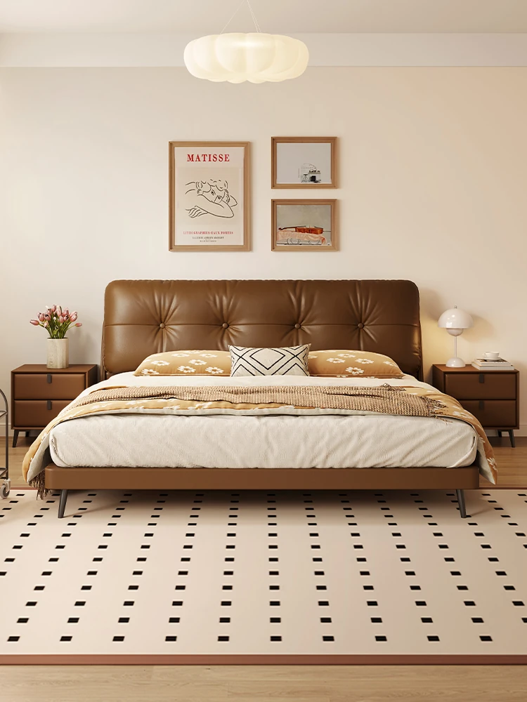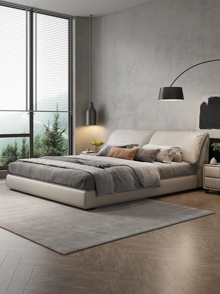 Luxurious Modern Minimalist Genuine Leather Bed - Italian Design, Soft Upholstered, Ideal for Master Bedrooms and Trendy Small Spaces
