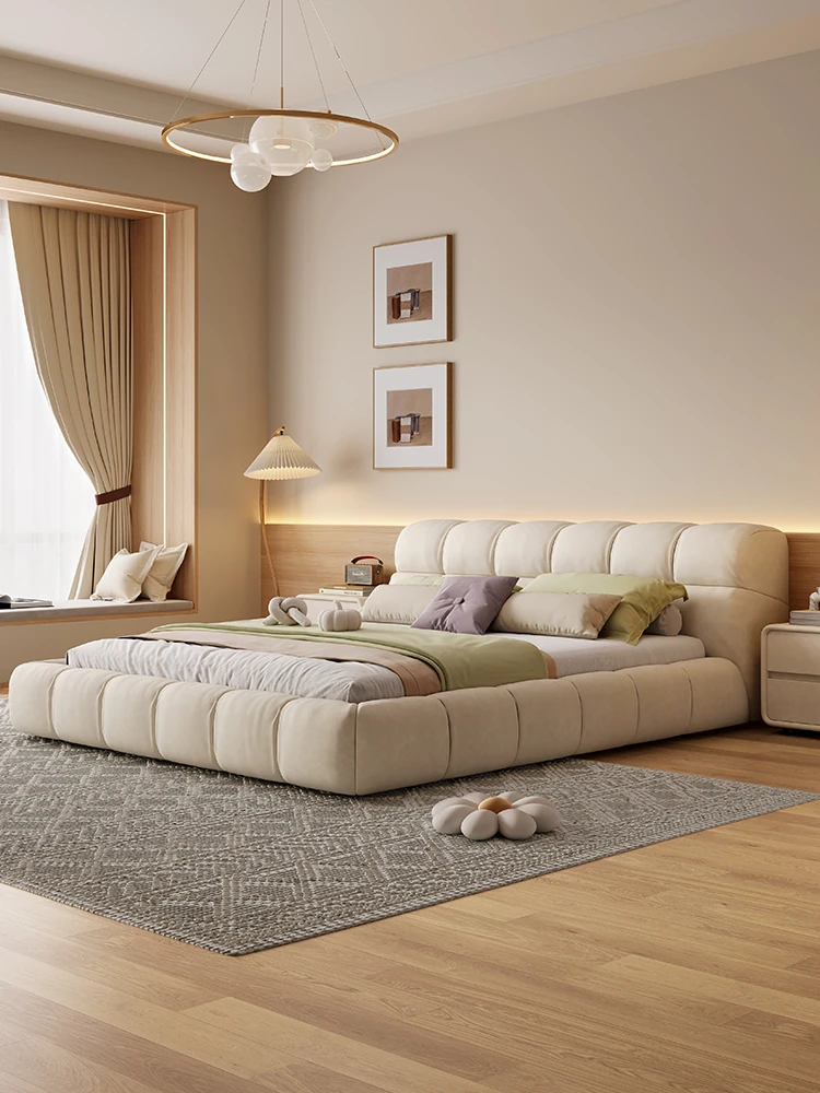 Modern Minimalist Tech Fabric Bed - Wabi-Sabi Nordic Style, Italian Light Luxury Matte Fabric Double Puff Bed - Trendy Bedroom Elegance