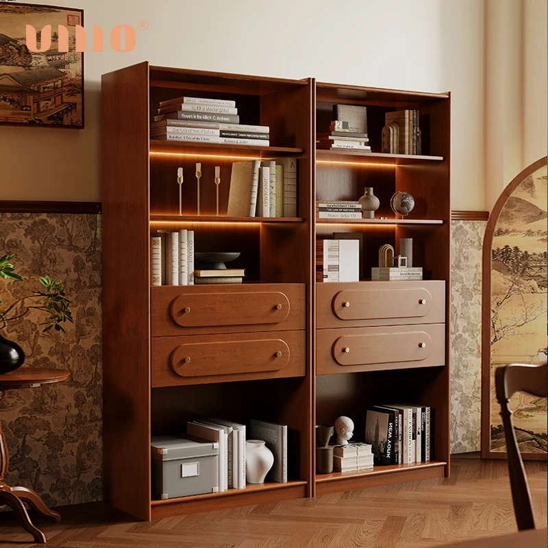 ULLLO Solid Wood Vintage Bookshelf - Mid-Century Style for Home Office & Bedroom, Freestanding Storage Shelf and Display Cabinet for Living Room