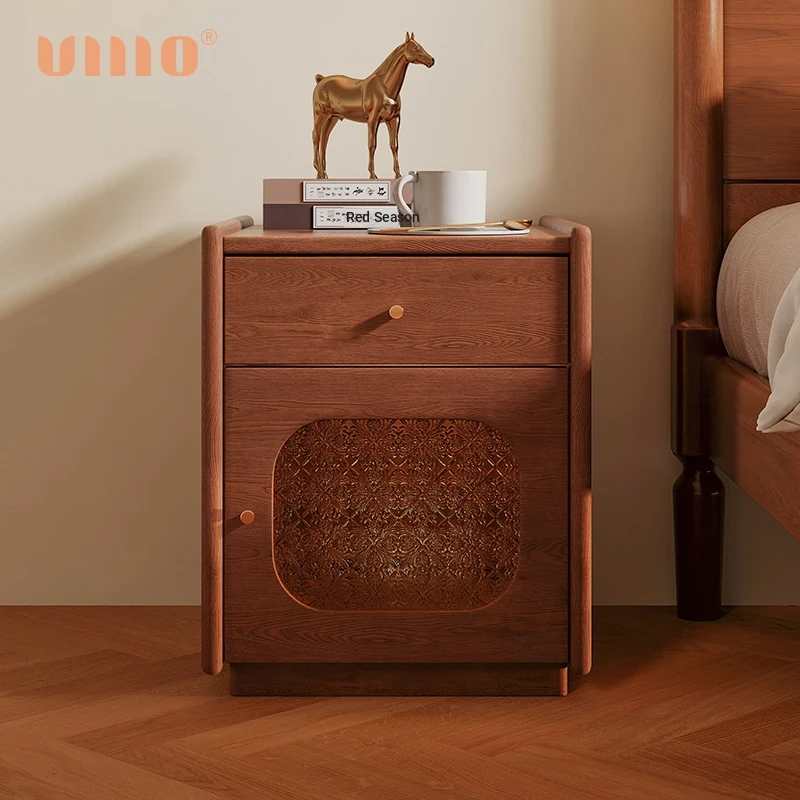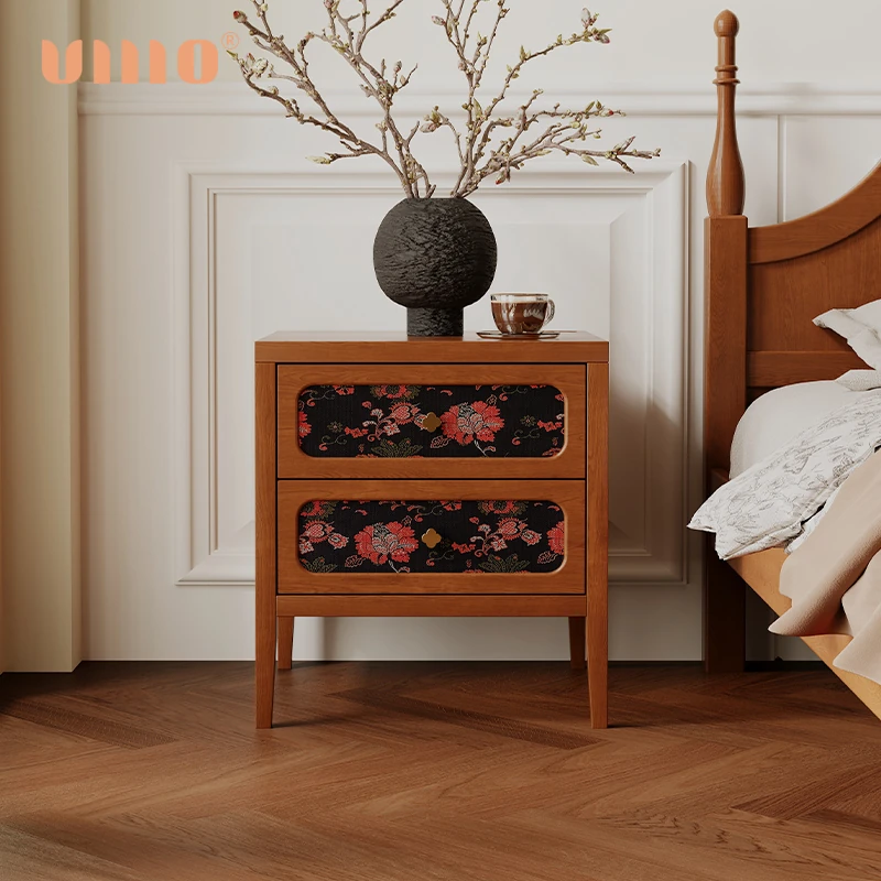 ULLLO Vintage Solid Wood Bedside Cabinet - Stylish Storage Solution for Compact Living Spaces, Perfect for Chinese-Style Bedrooms and Living Rooms