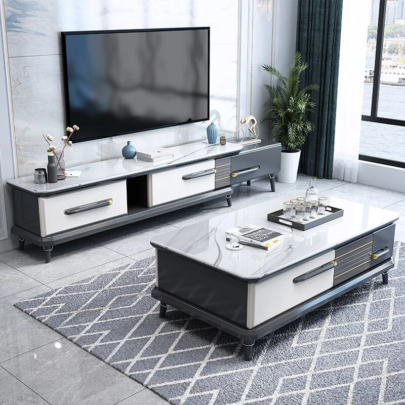 Elegant Modern Coffee Table & TV Cabinet Set - Luxury Stone Finish for Contemporary Living Rooms, Perfect for Compact Nordic Styled Homes with Adjustable TV Stand