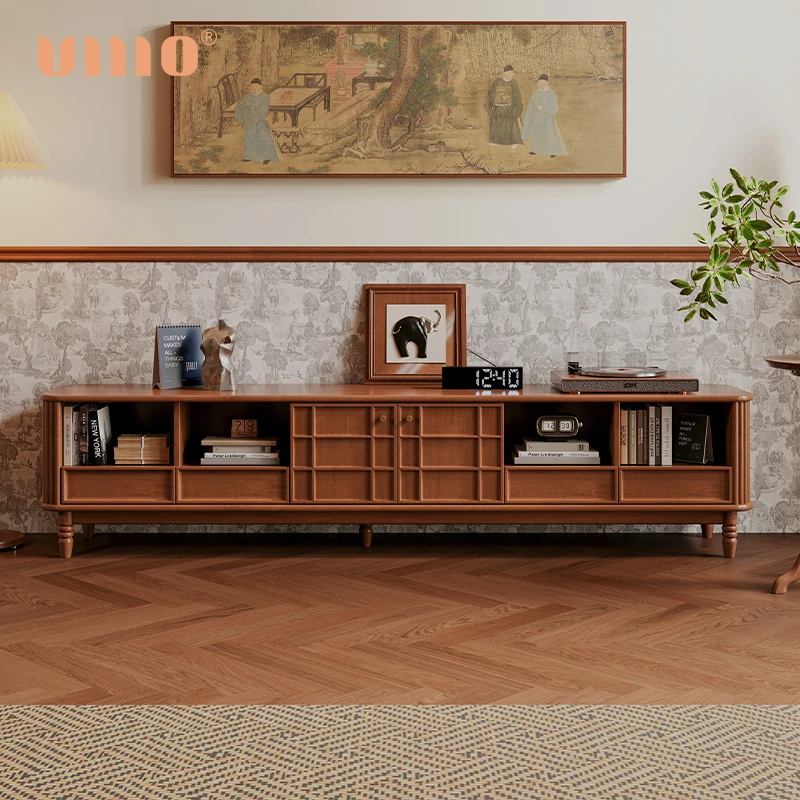 ULLLO French-Style Solid Wood TV Stand - Compact Size, Simple American Vintage Design, Perfect for Living Room Storage and Home Decor