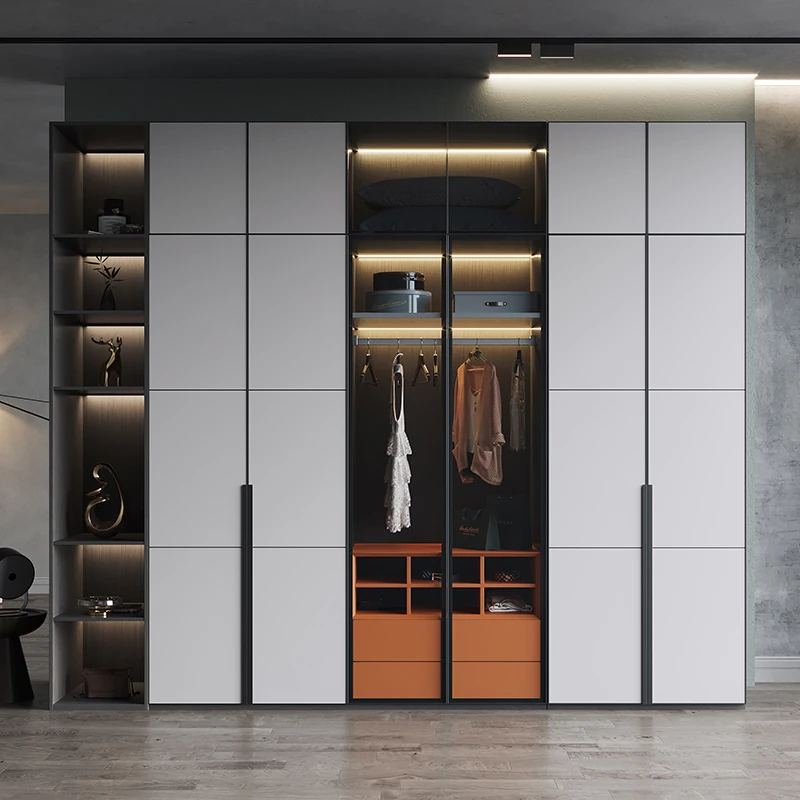 Minimalist Wardrobe - Luxury Modern Compact Bedroom Storage Cabinet with Glass Doors & LED Lights - Perfect for Nordic-Style Homes