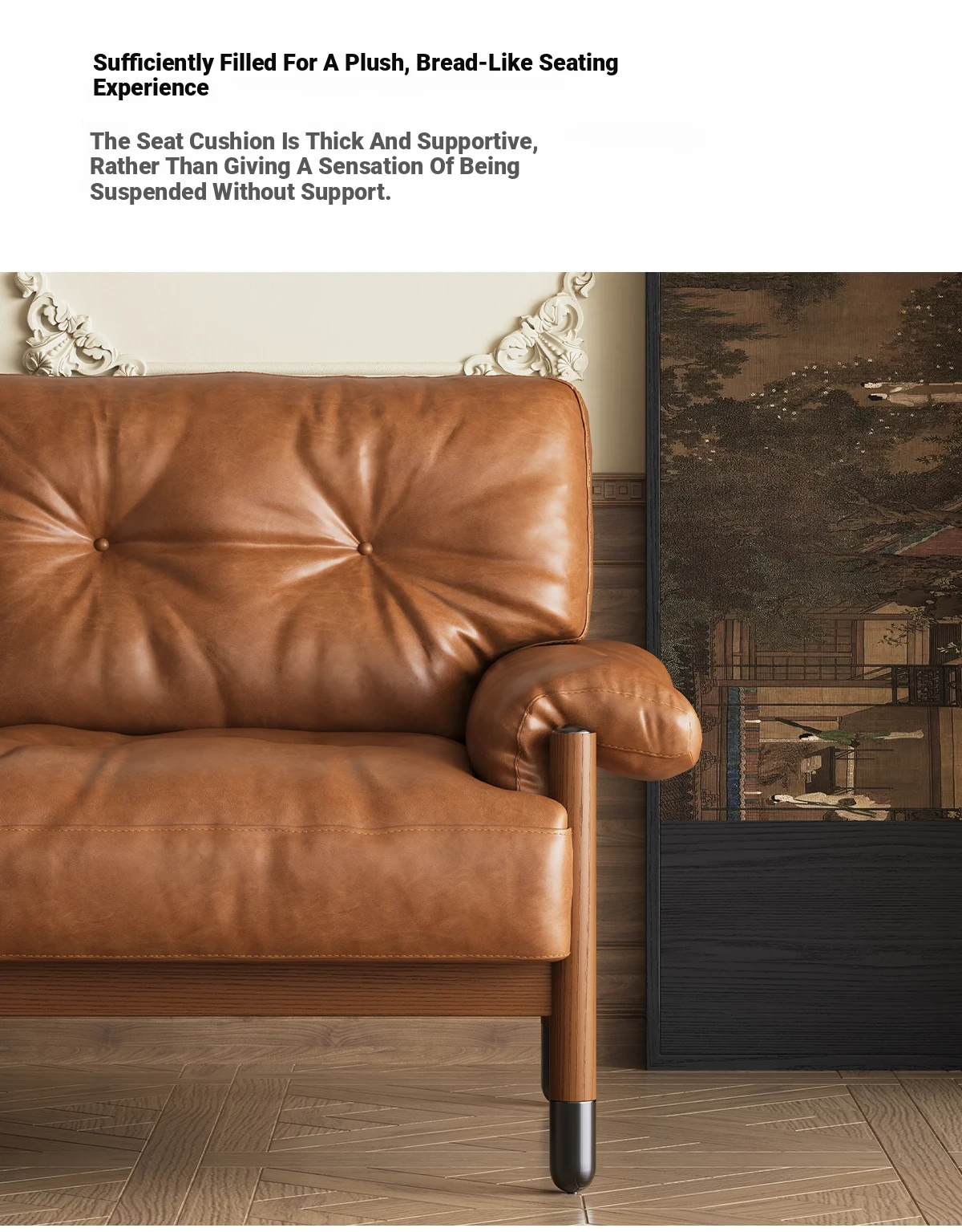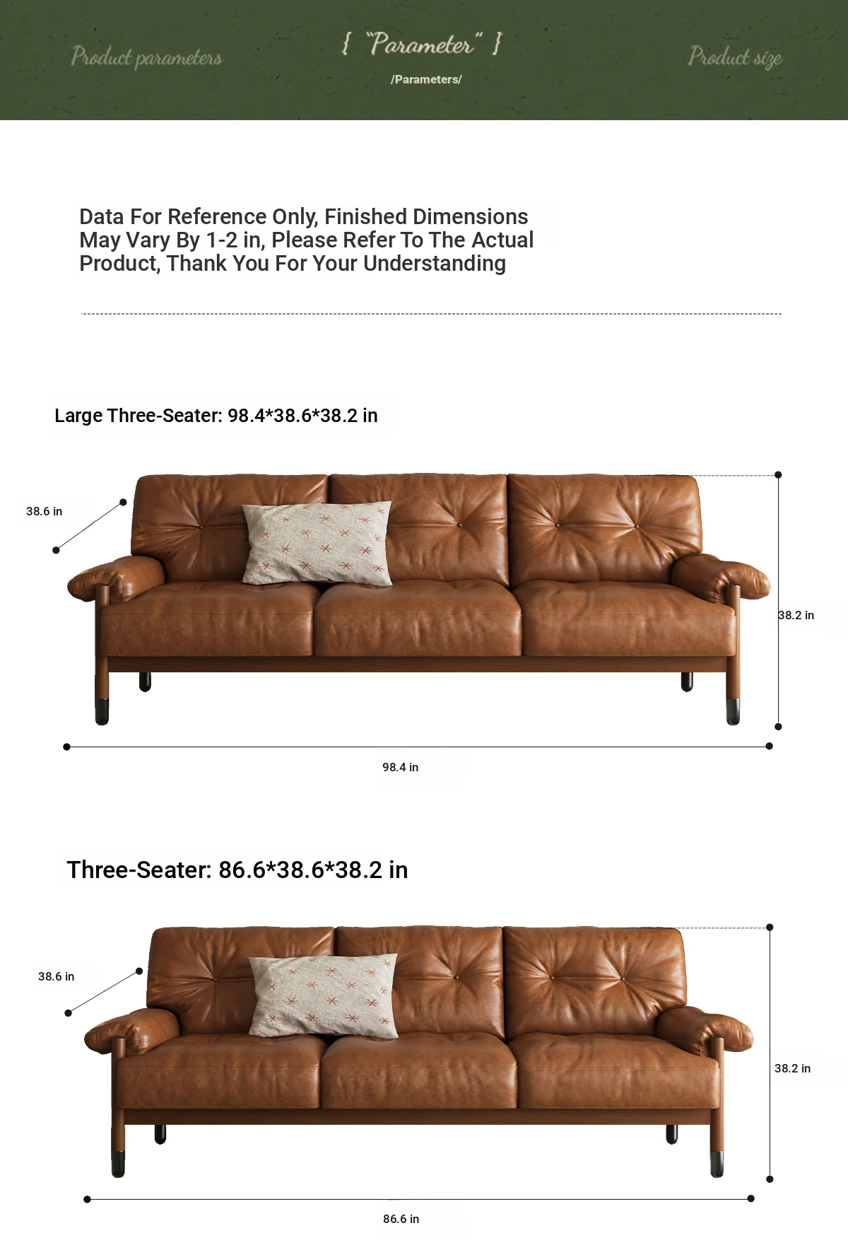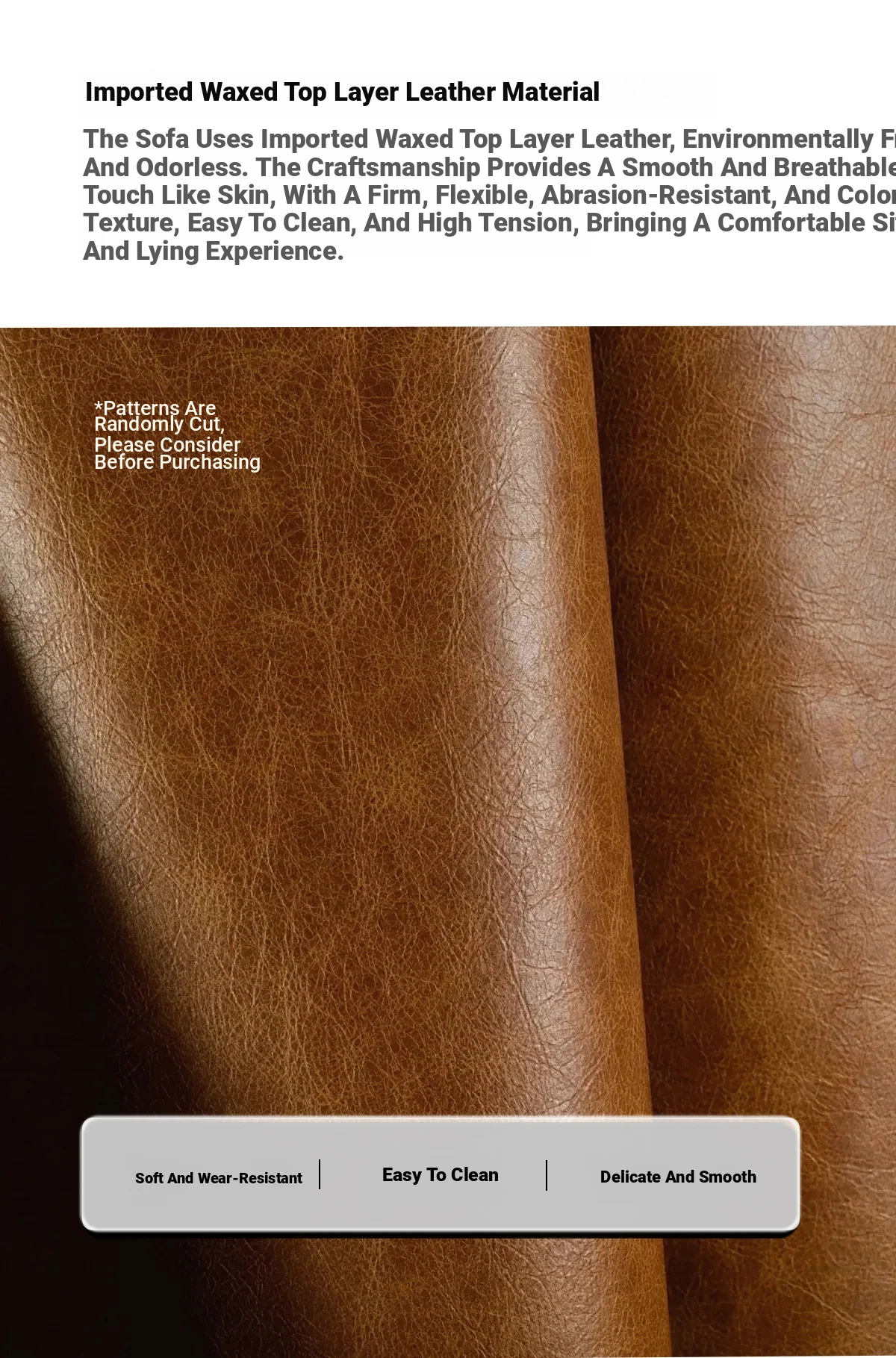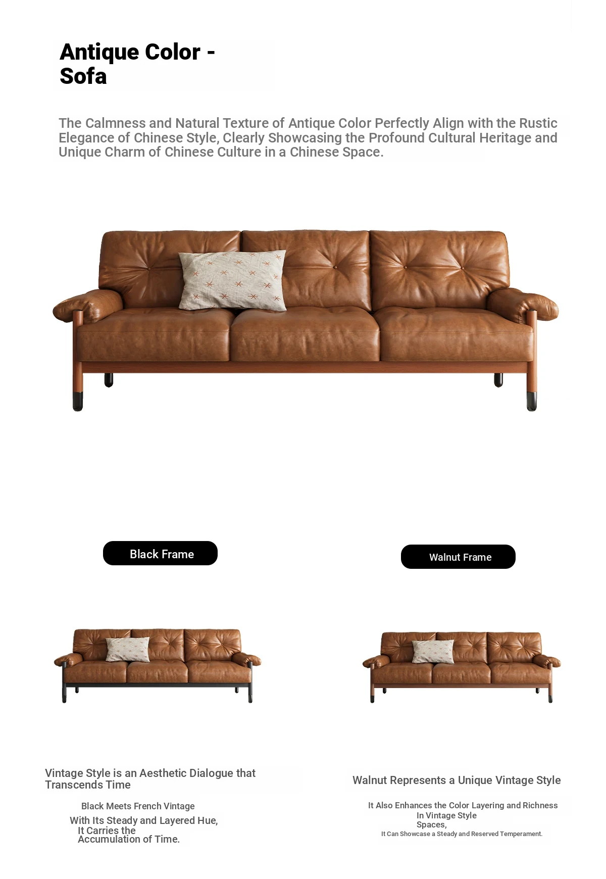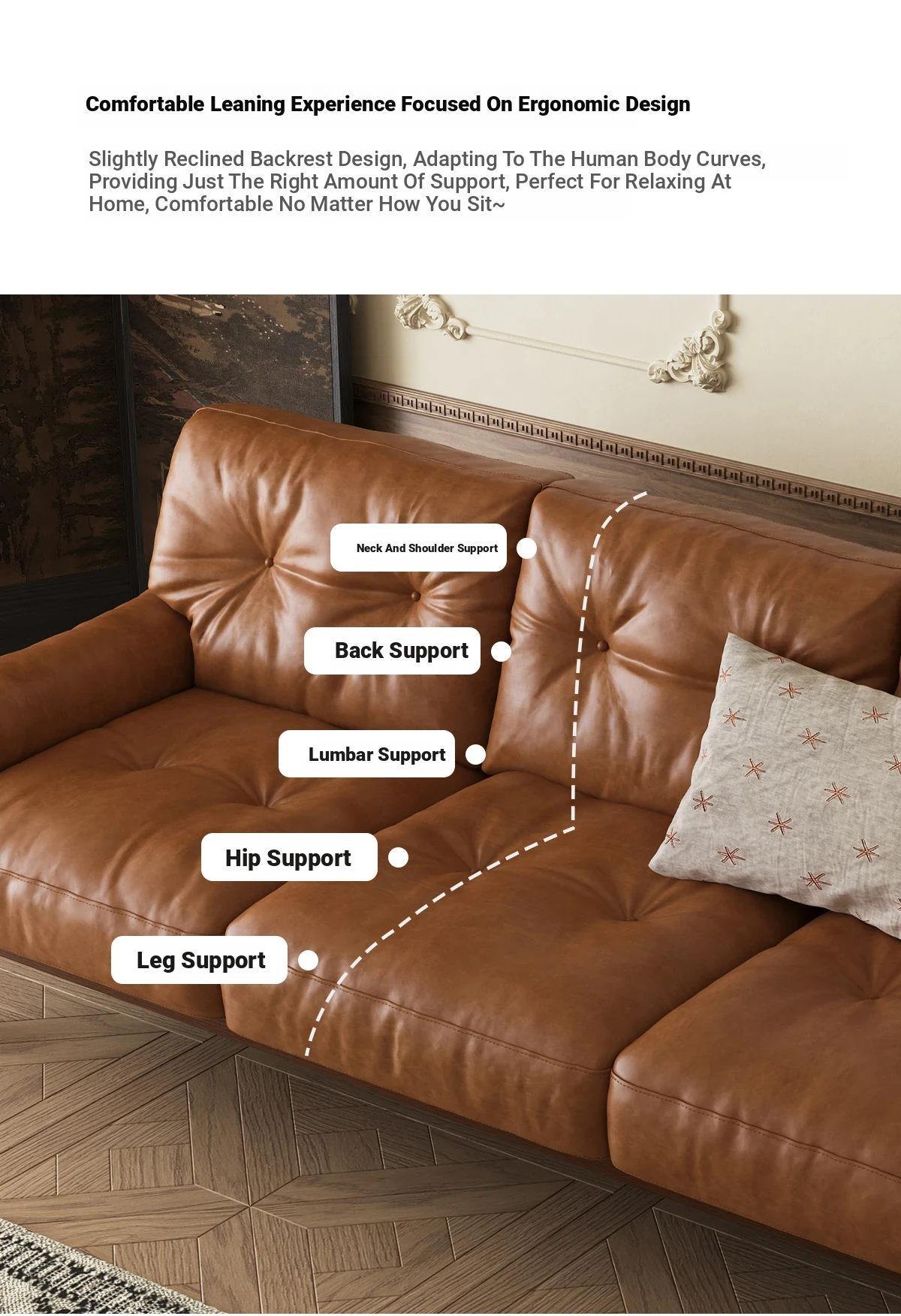 ULLLO French Vintage Solid Wood Sofa - Waxed Genuine Leather Designer Three-Seat Sofa for Living Room with Starry Design