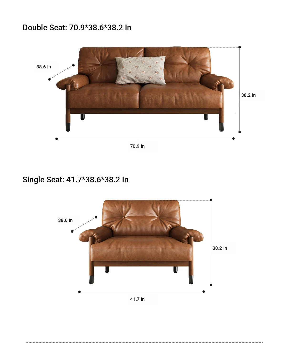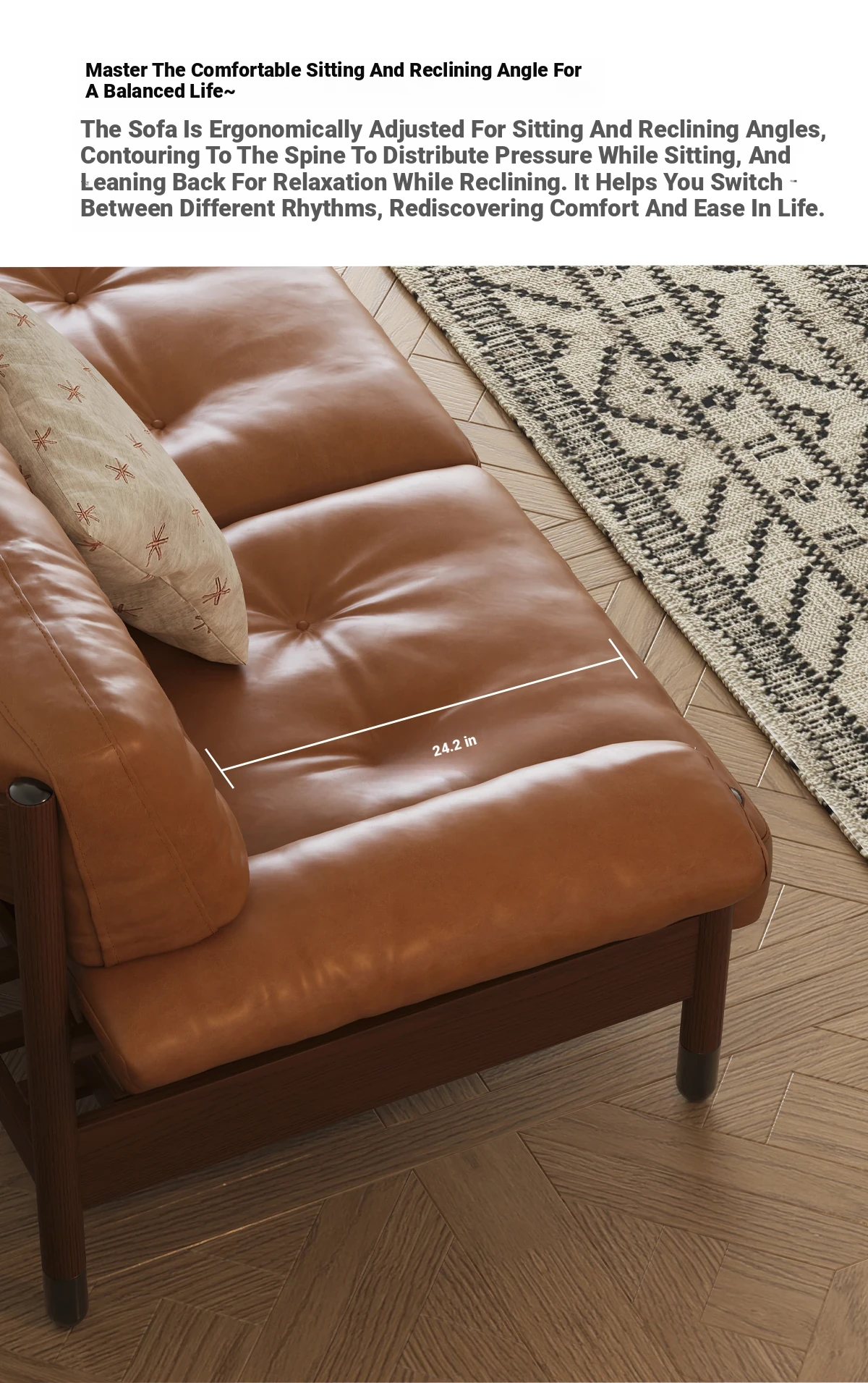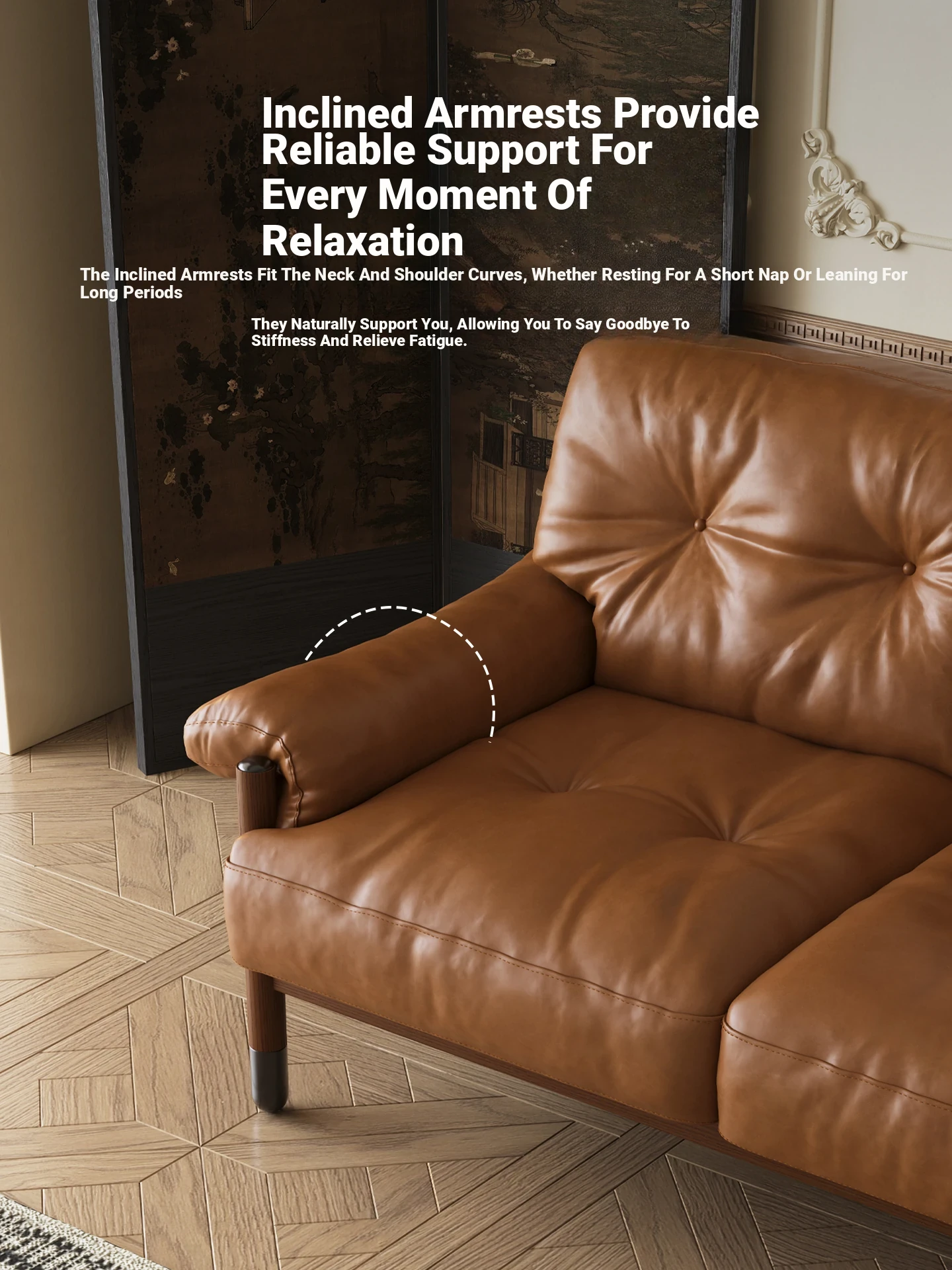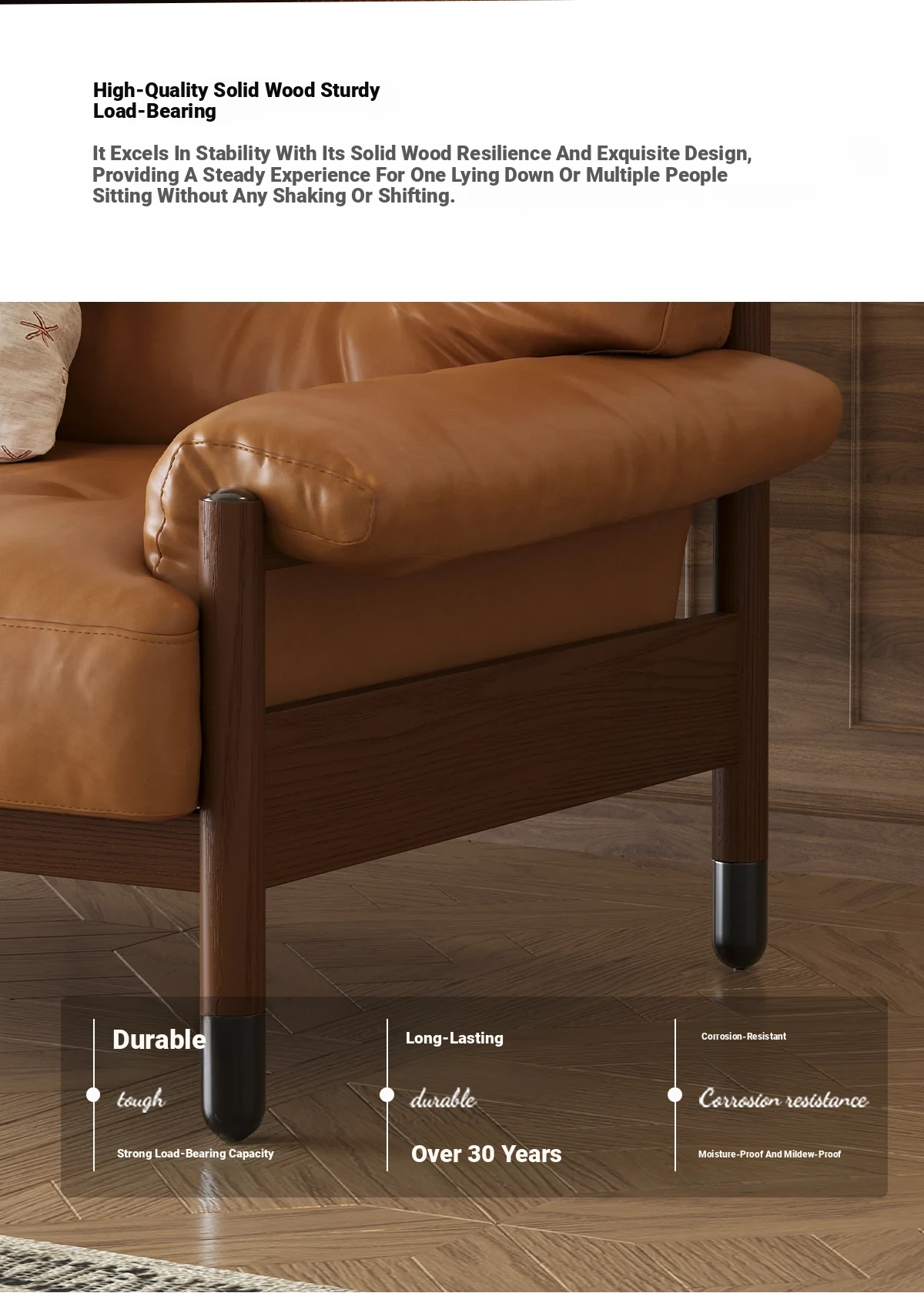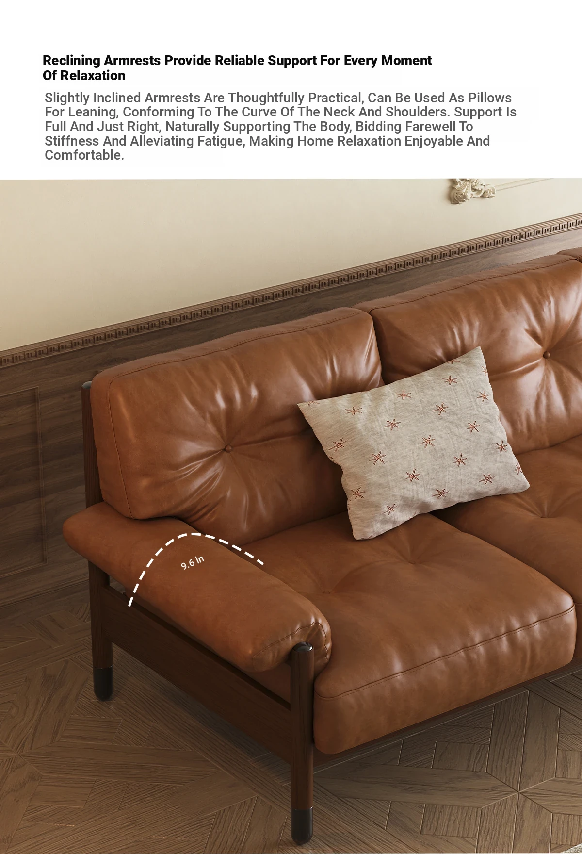 ULLLO French Vintage Solid Wood Sofa - Waxed Genuine Leather Designer Three-Seat Sofa for Living Room with Starry Design