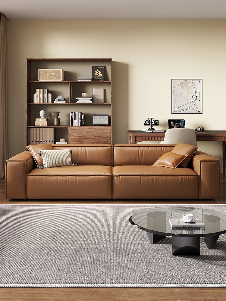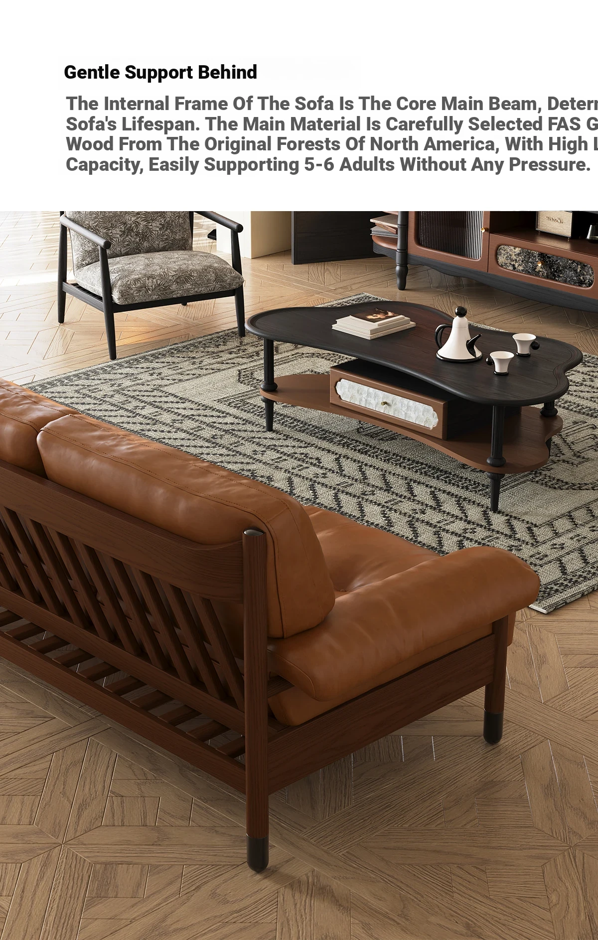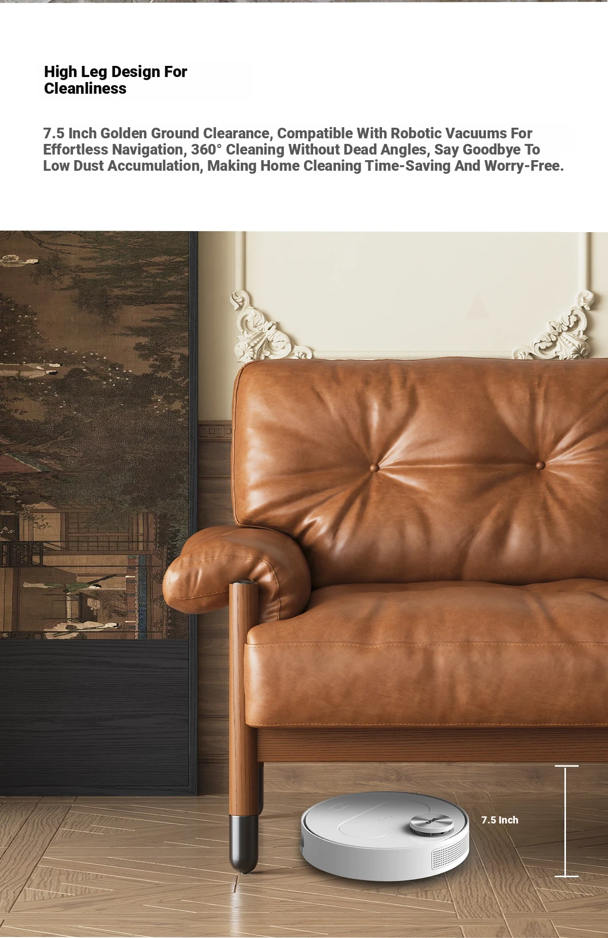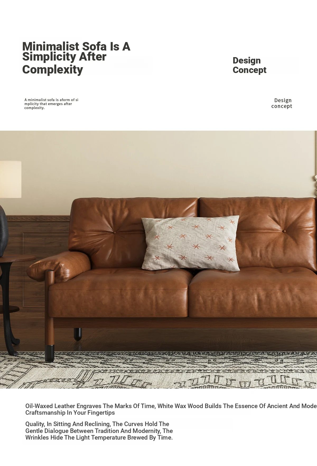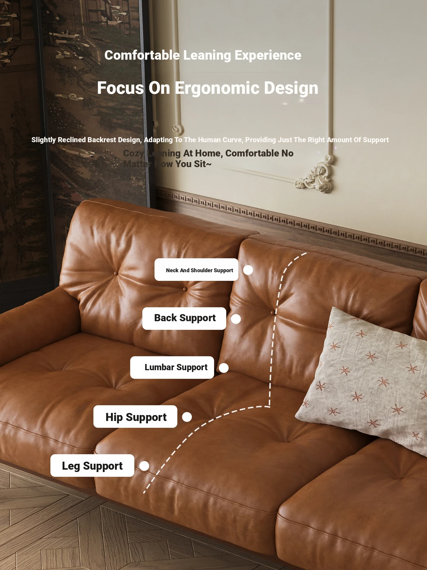 ULLLO French Vintage Solid Wood Sofa - Waxed Genuine Leather Designer Three-Seat Sofa for Living Room with Starry Design