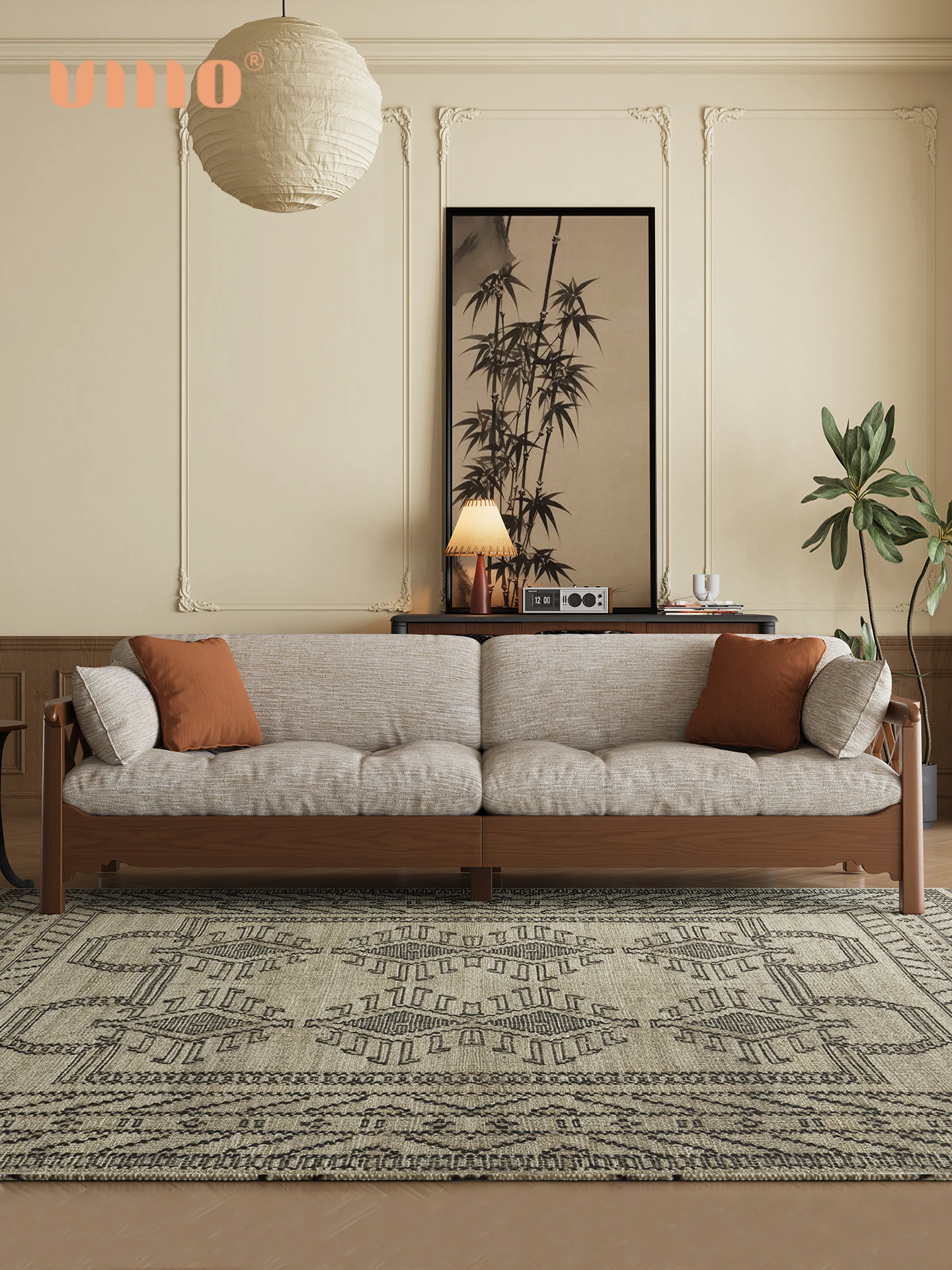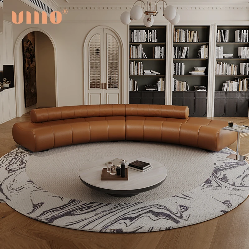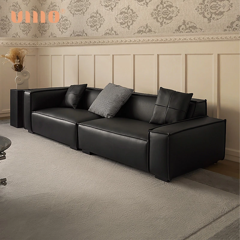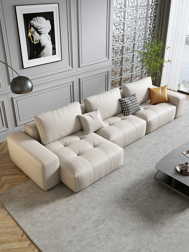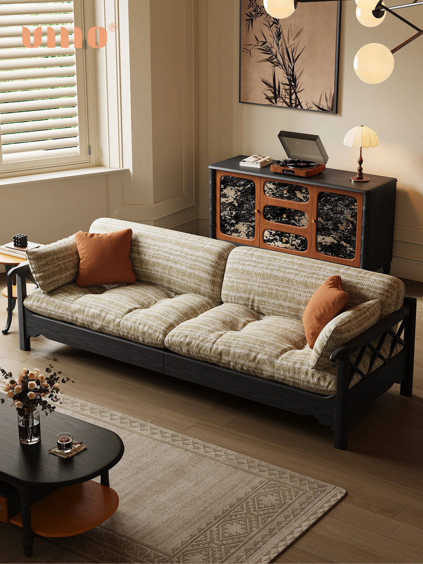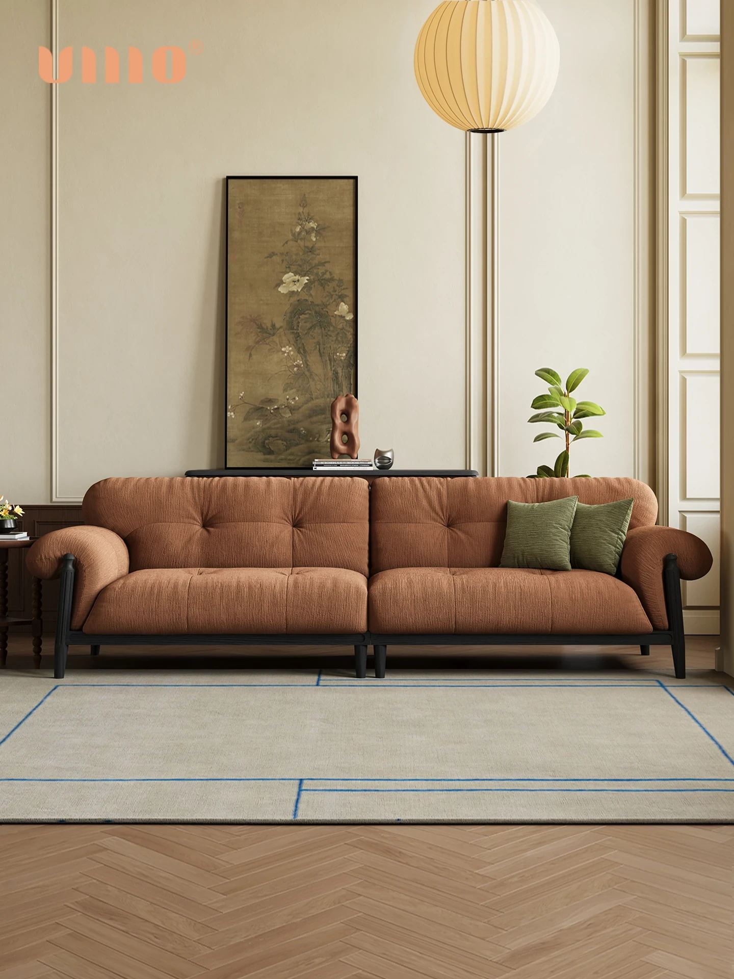 ULLLO French Vintage Solid Wood Sofa - Waxed Genuine Leather Designer Three-Seat Sofa for Living Room with Starry Design