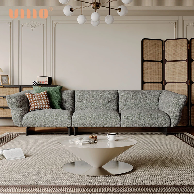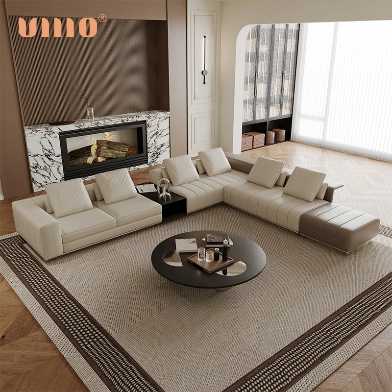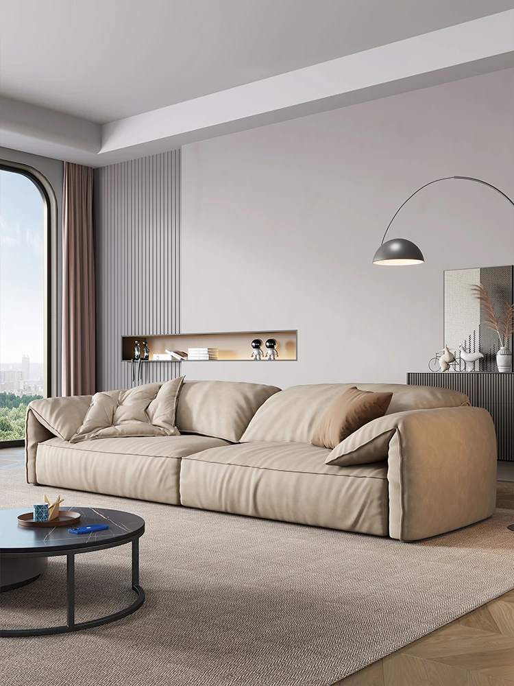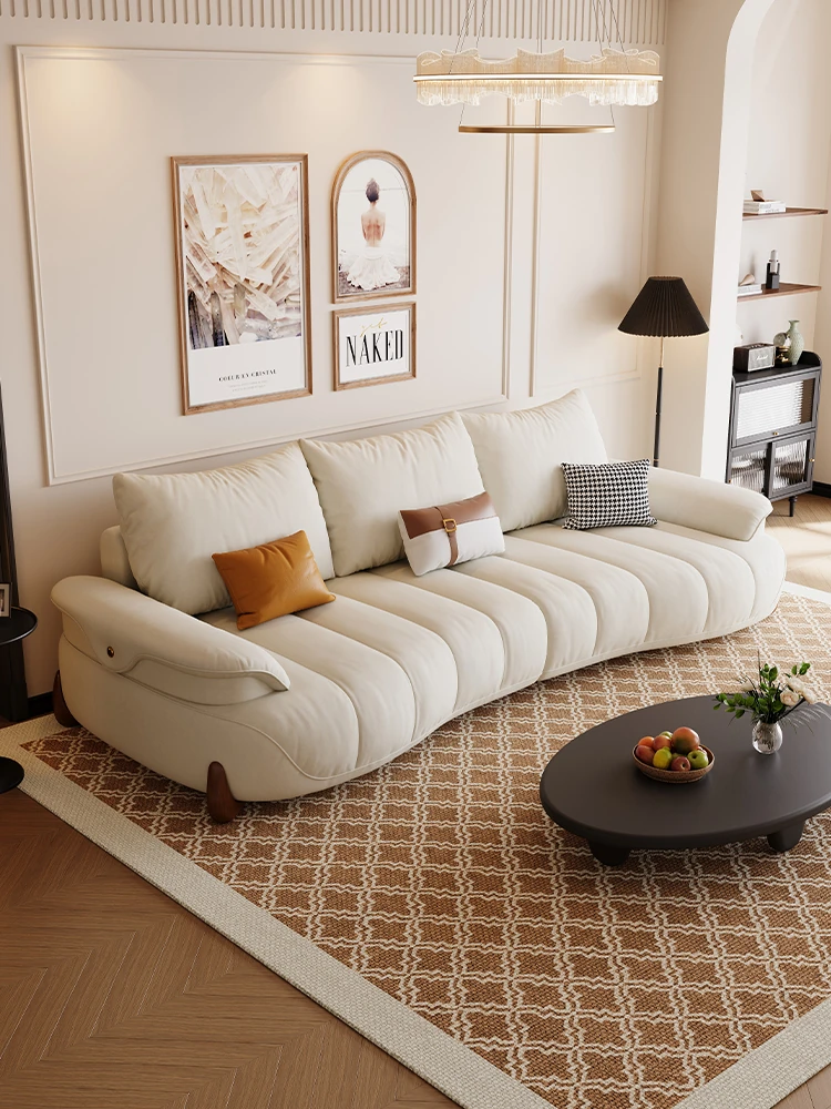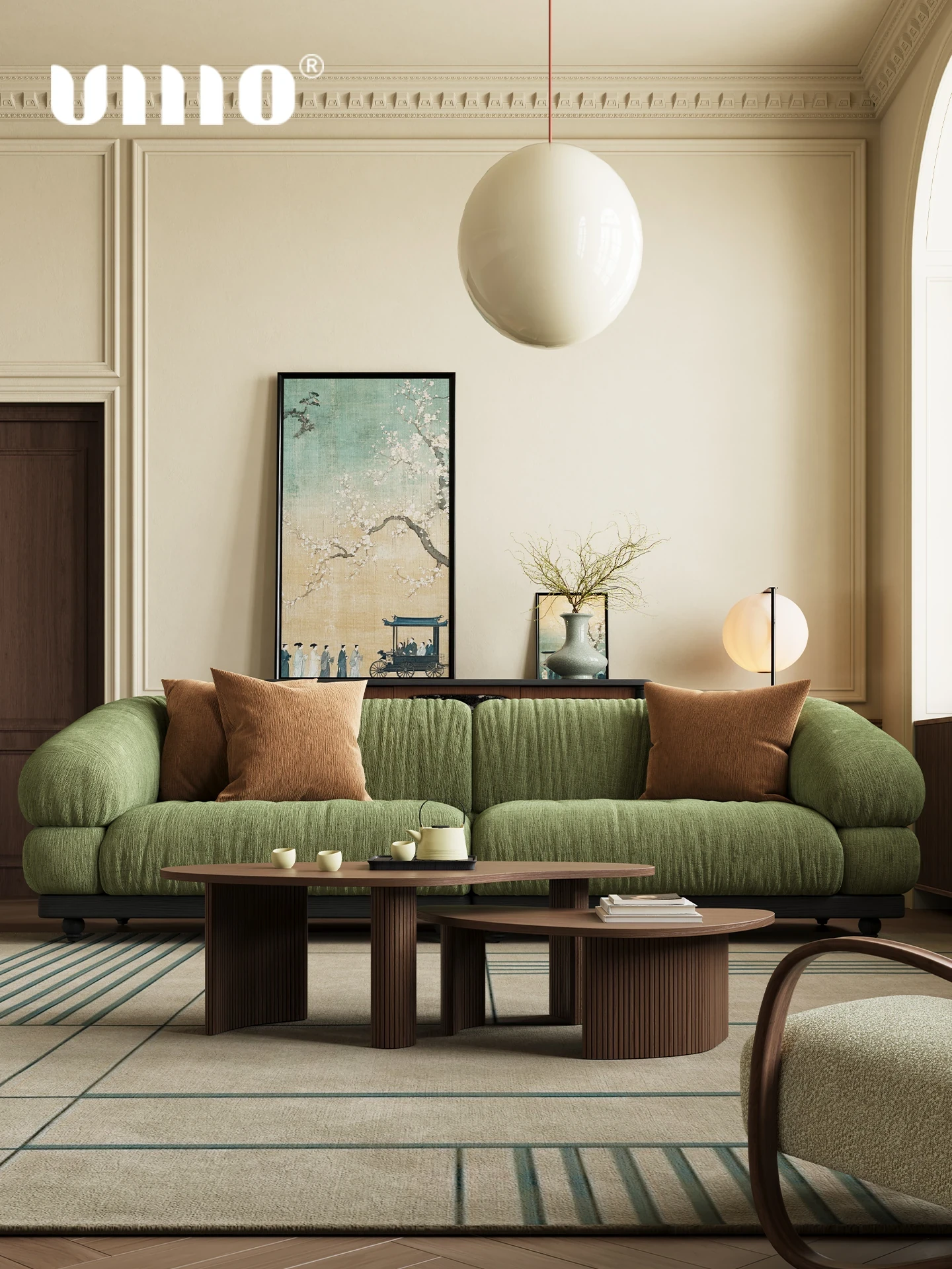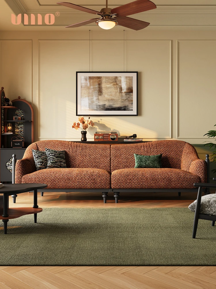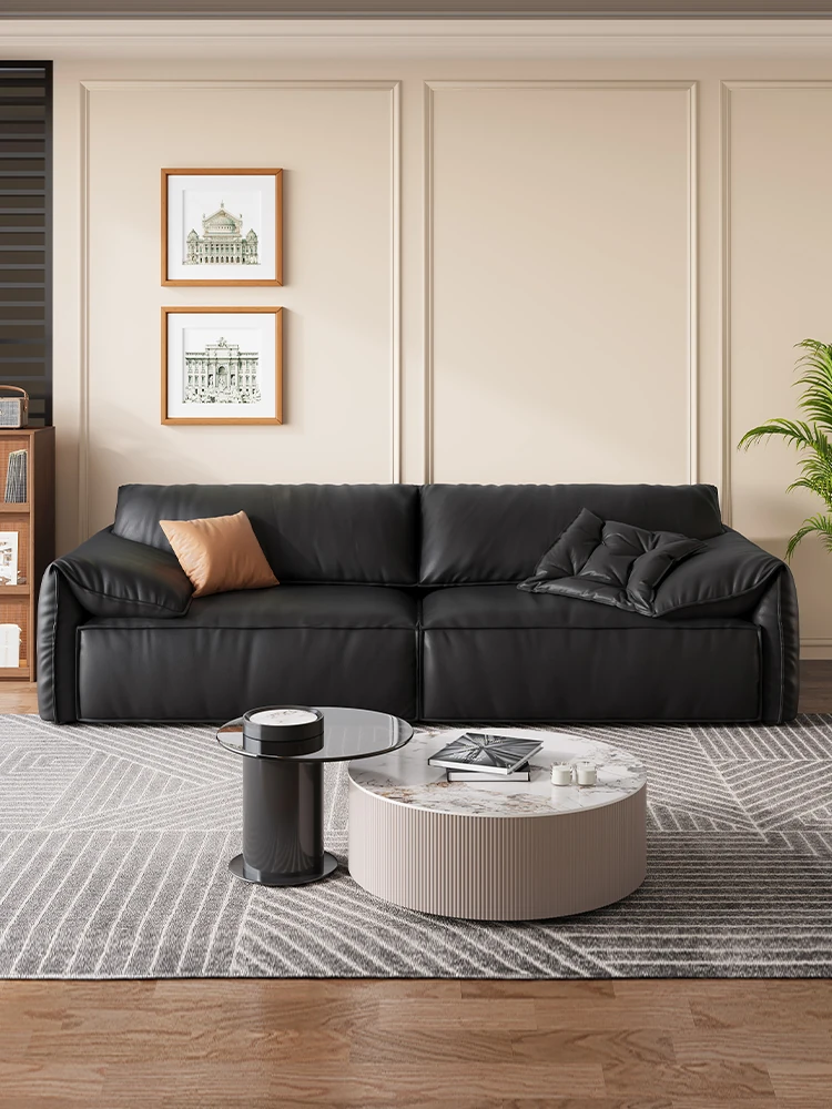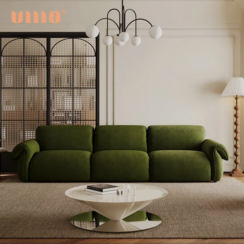 ULLLO French Vintage Solid Wood Sofa - Waxed Genuine Leather Designer Three-Seat Sofa for Living Room with Starry Design