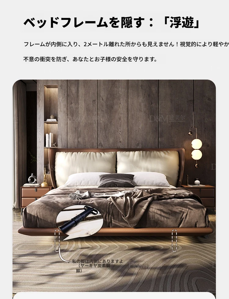 2メートルインフルエンサー好評の軽奢華収納付き無垢浮遊ベッド—シンプルモダンなデザインでスタイリッシュ空間を演出