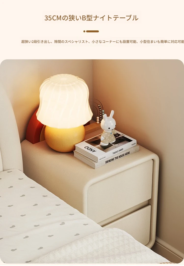 新登場!迪美尔のクリーム風スリムナイトテーブル - モダンでシンプル、実用性抜群!狭いスペースにも最適なミニマルデザインのウッド製収納サイドテーブル。
