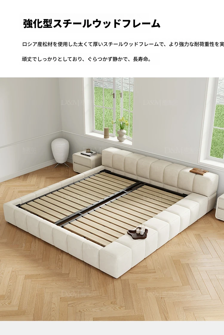 ディメールシュガーブロック布張りベッド - モダンでシンプルなデザインのダブルベッド。主寝室や新婚カップルに最適!畳収納付き、イタリア風の軽やかなラグジュアリーで、おしゃれな空間を演出します!