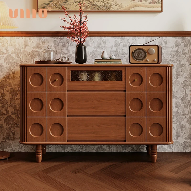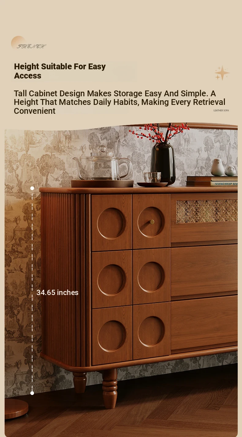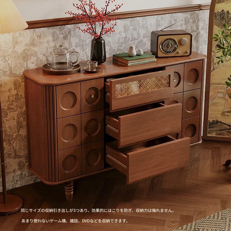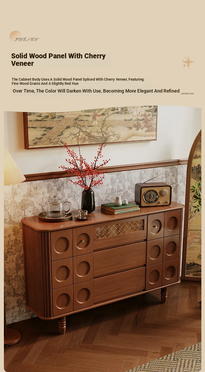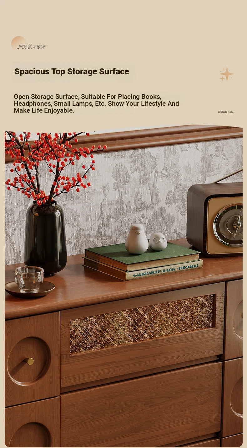 【ULLLO】フランス風ヴィンテージ天然木サイドボード:エレガントなリビング収納キャビネット - 玄関やリビングに最適な多機能収納家具