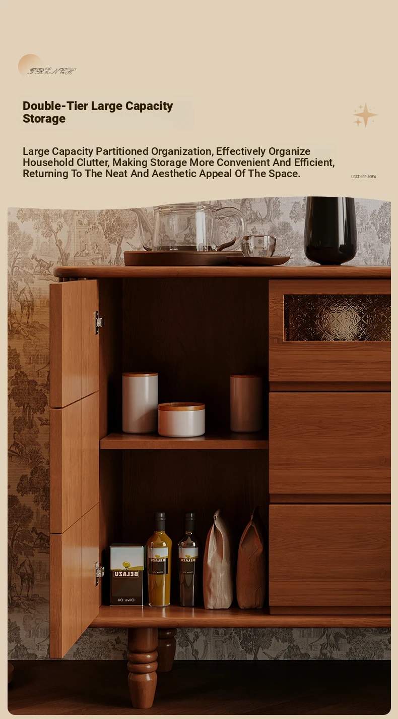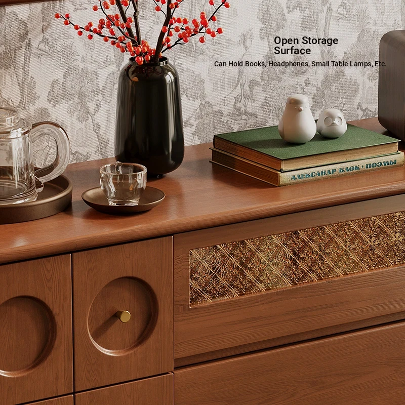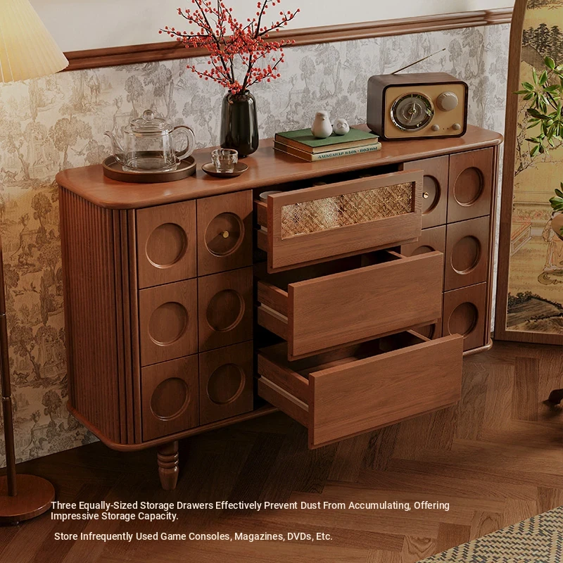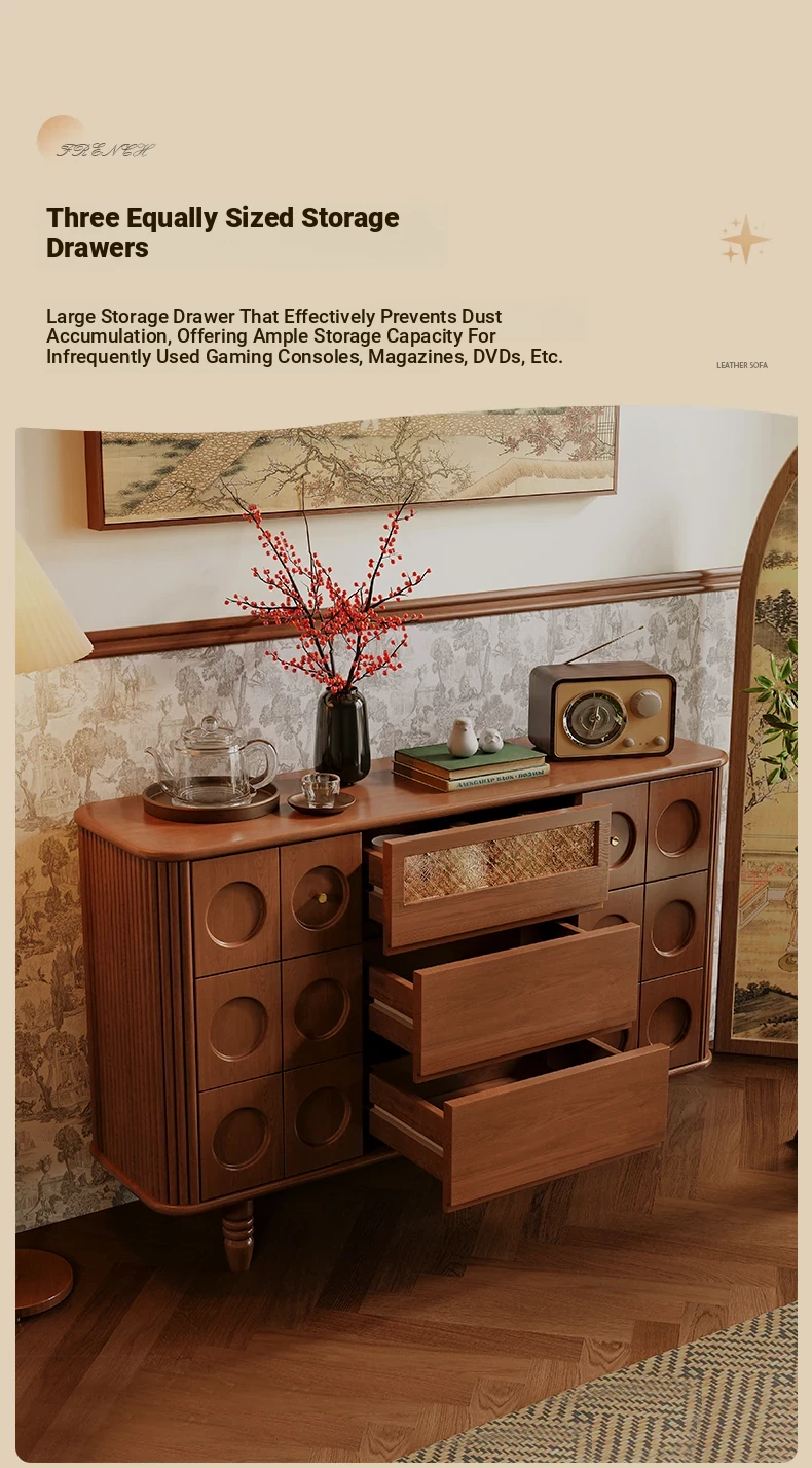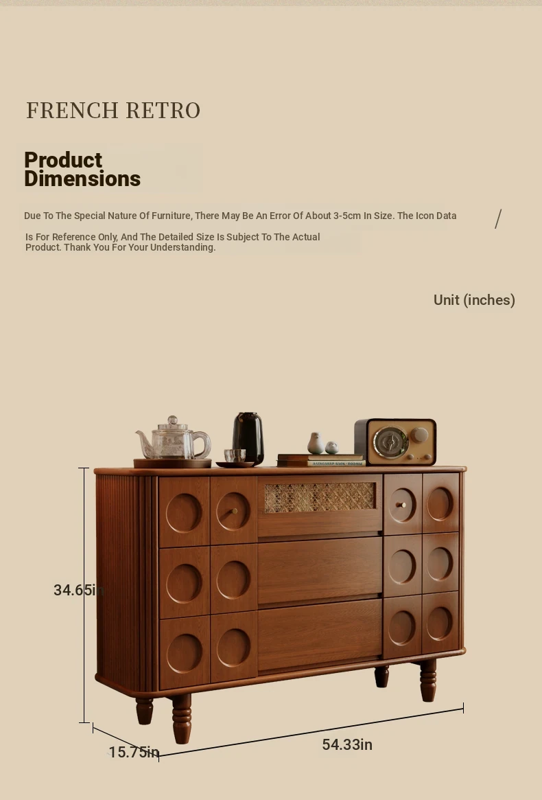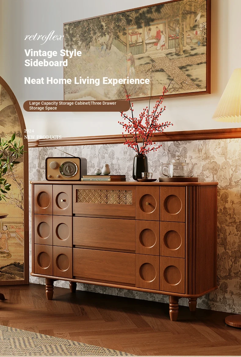 【ULLLO】フランス風ヴィンテージ天然木サイドボード:エレガントなリビング収納キャビネット - 玄関やリビングに最適な多機能収納家具