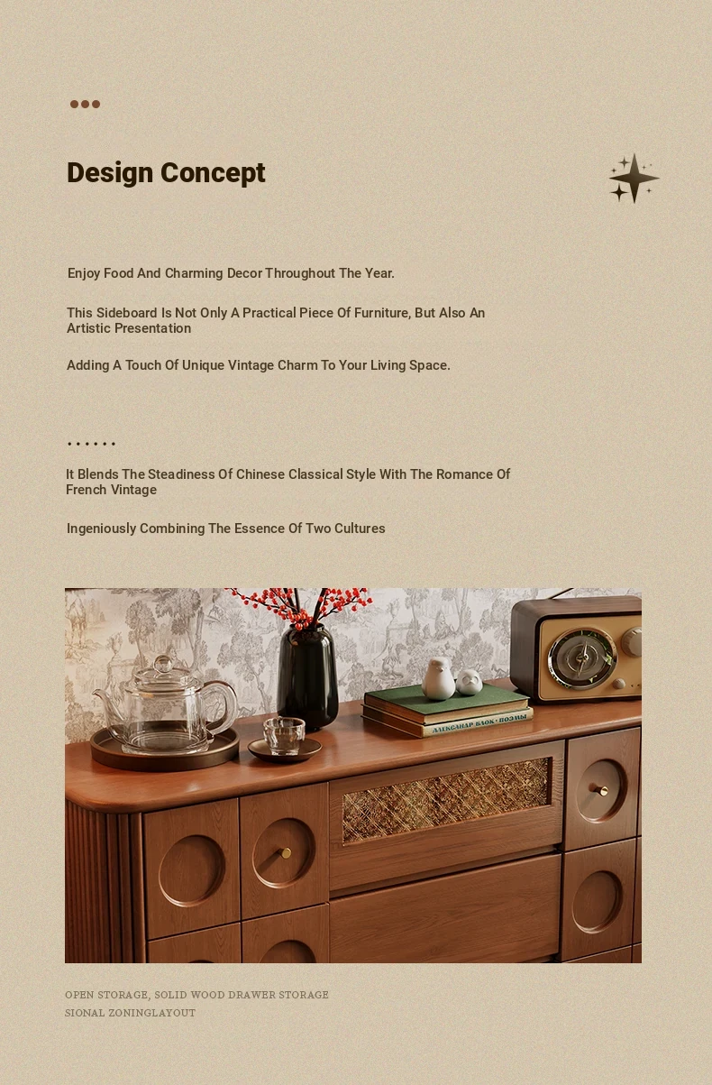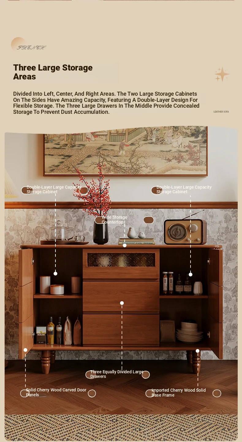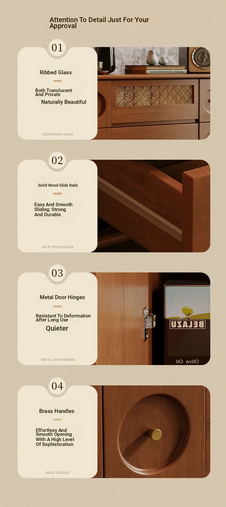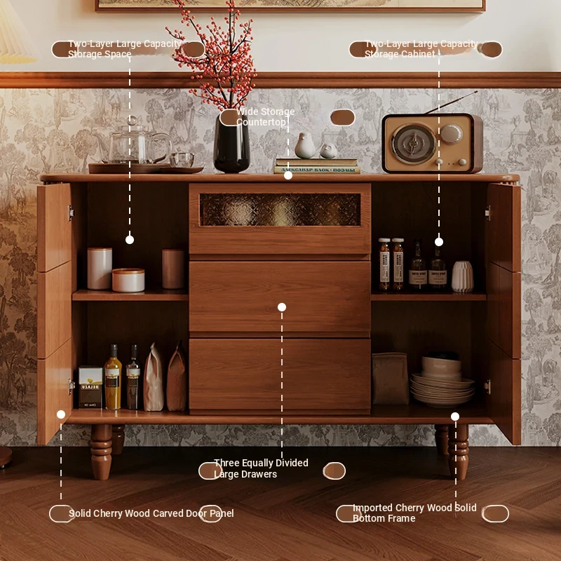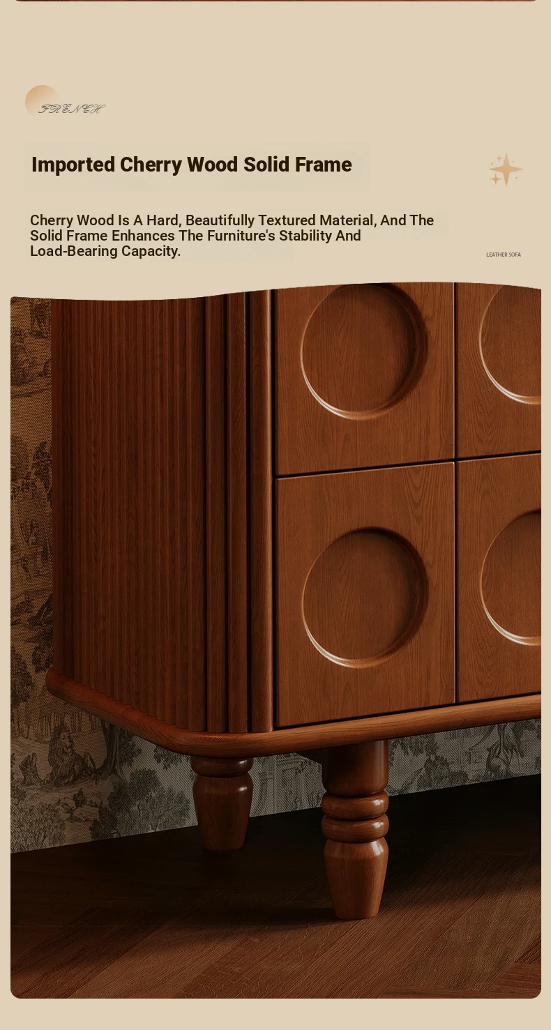 【ULLLO】フランス風ヴィンテージ天然木サイドボード:エレガントなリビング収納キャビネット - 玄関やリビングに最適な多機能収納家具