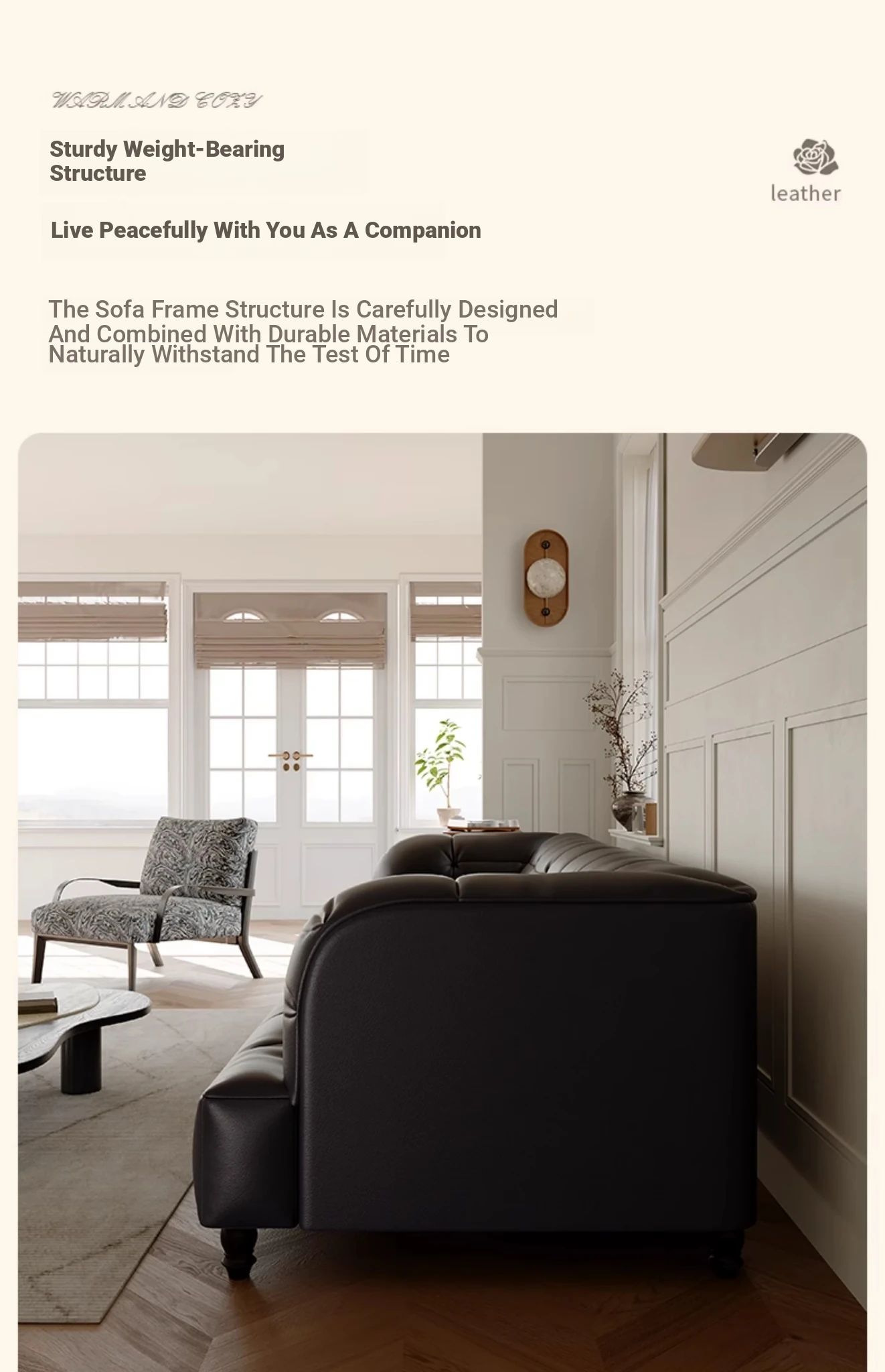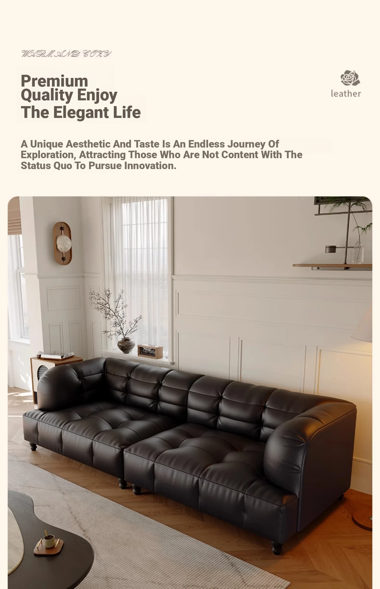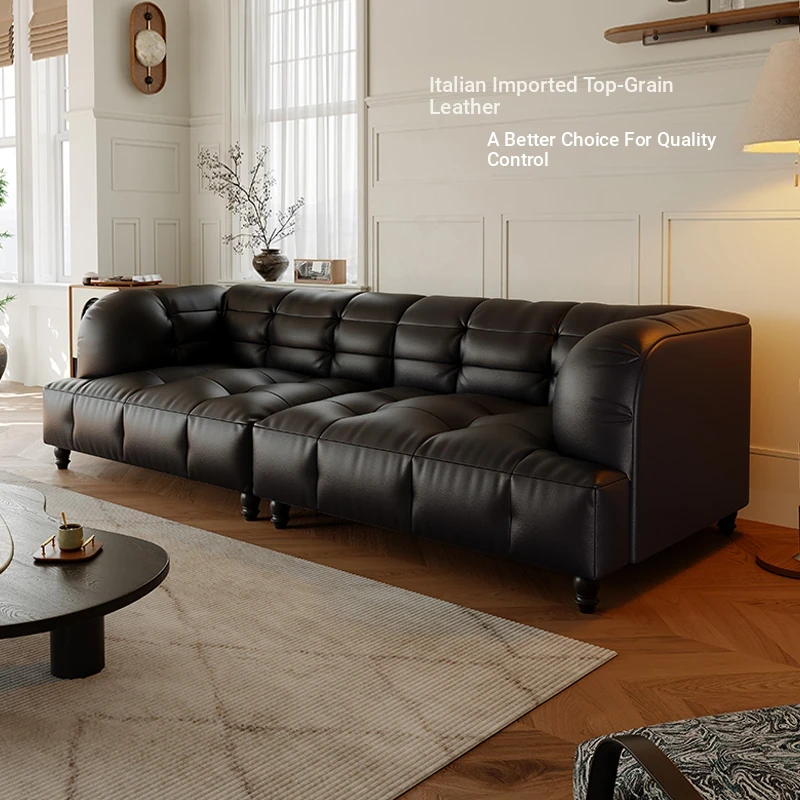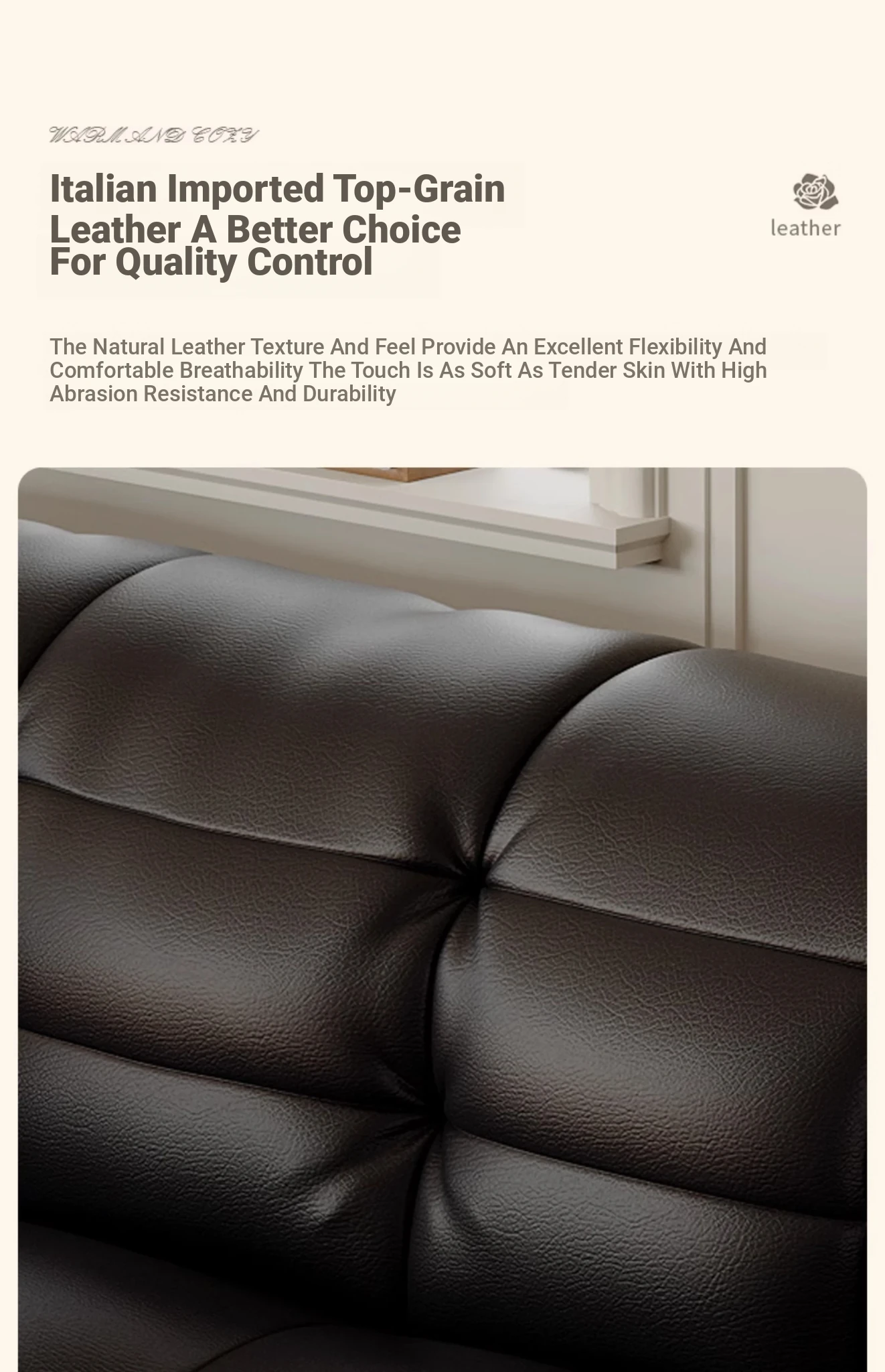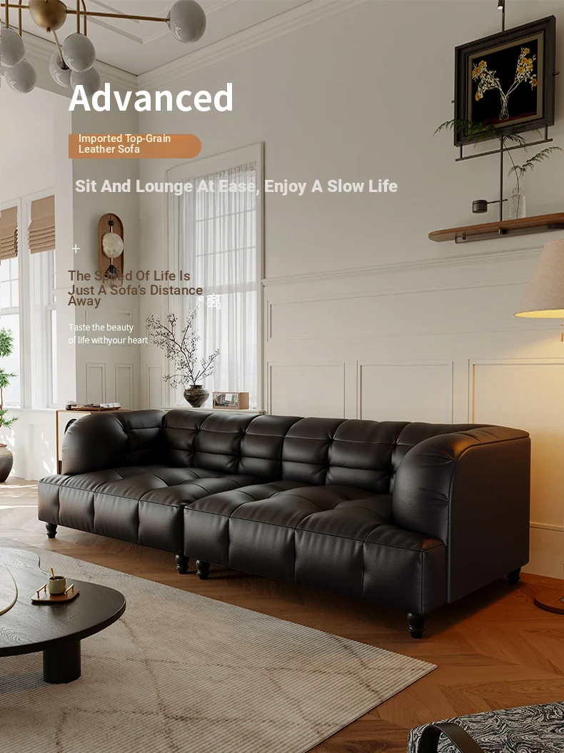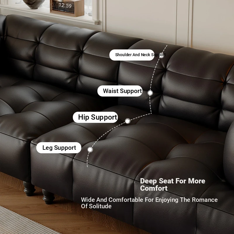 ULLLO French Vintage High-Leg Sofa - Luxurious Four-Seater Genuine Leather Sofa with Original American Design for Your Living Room