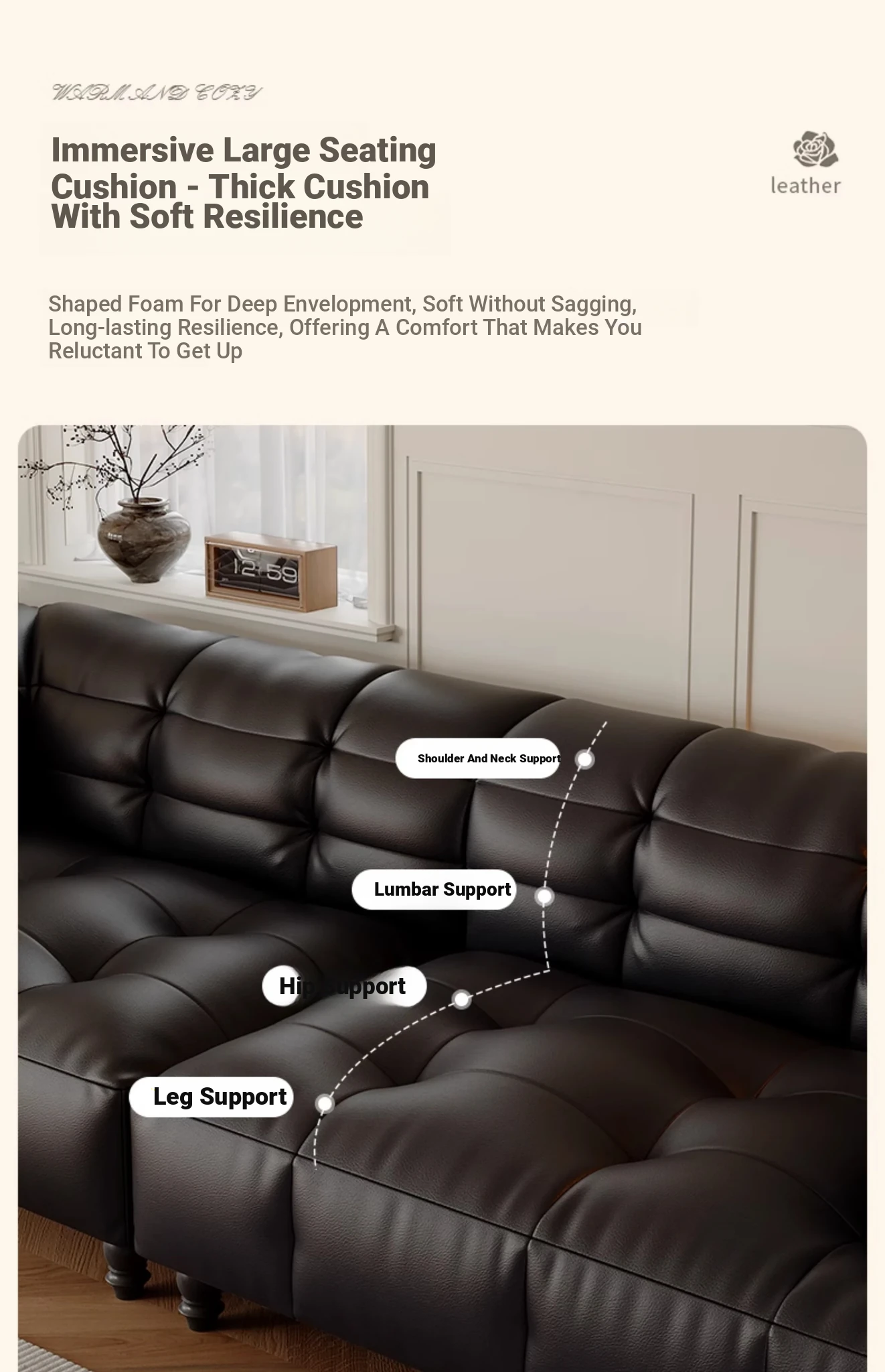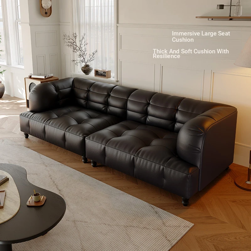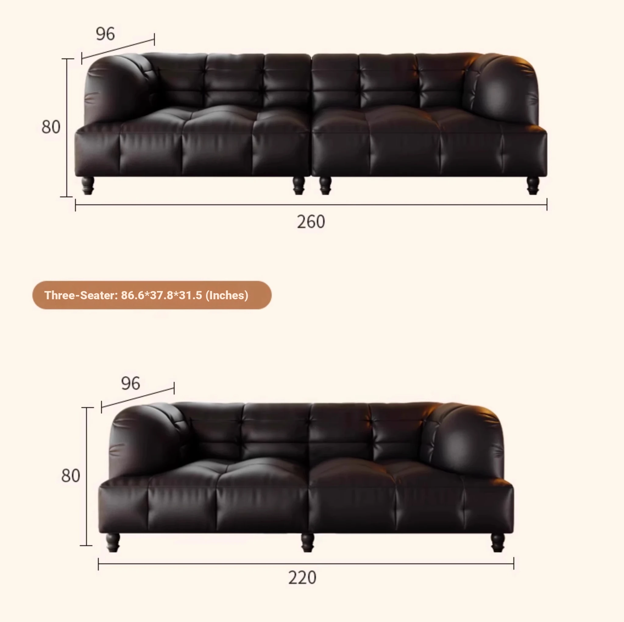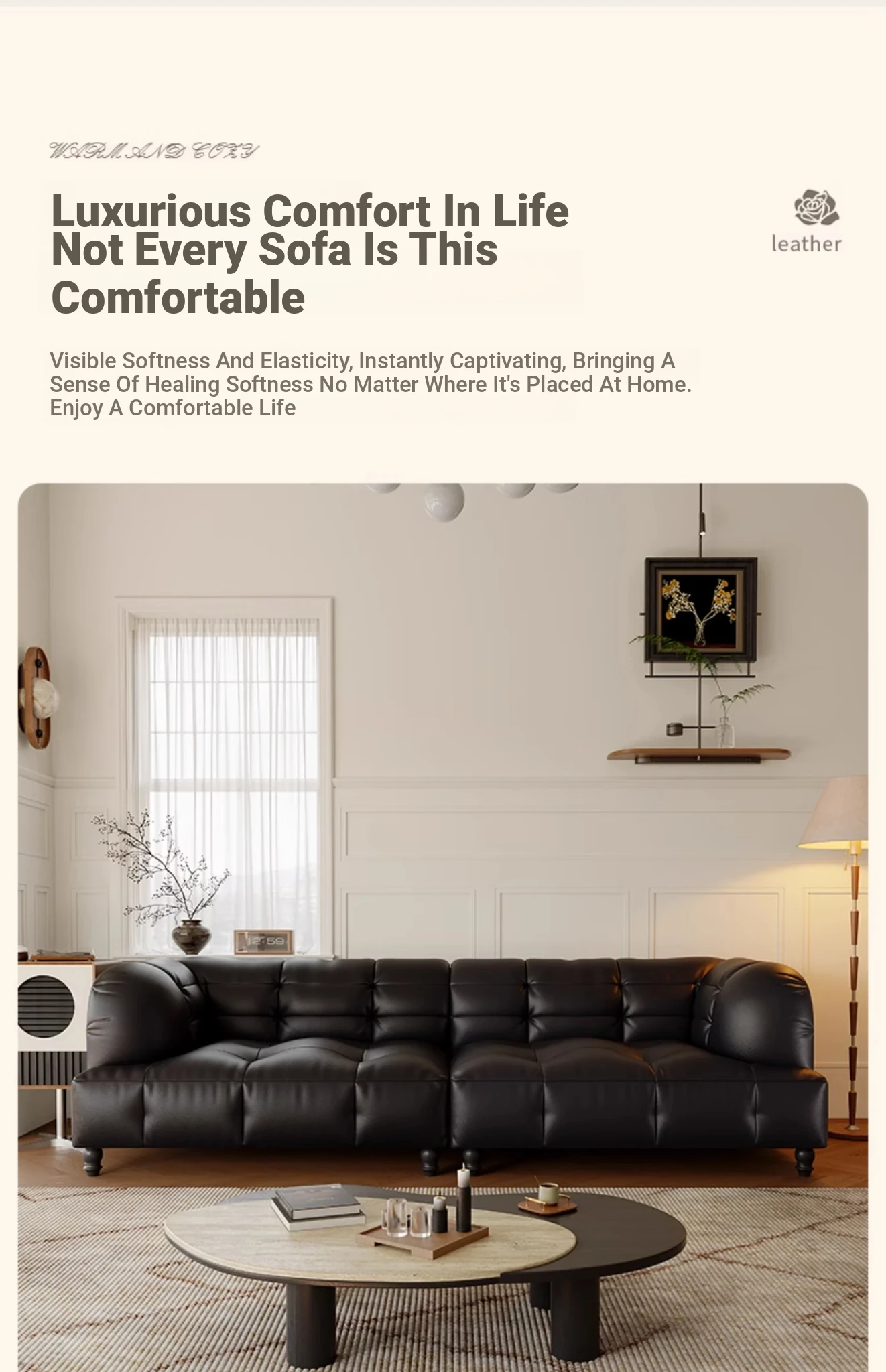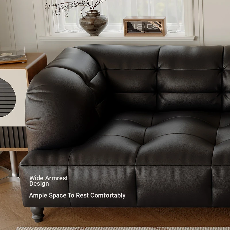 ULLLO French Vintage High-Leg Sofa - Luxurious Four-Seater Genuine Leather Sofa with Original American Design for Your Living Room