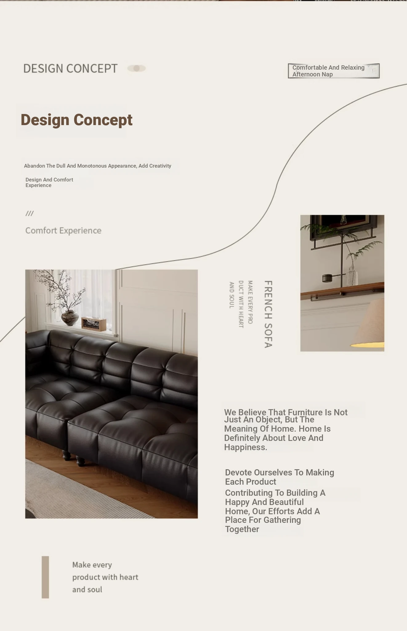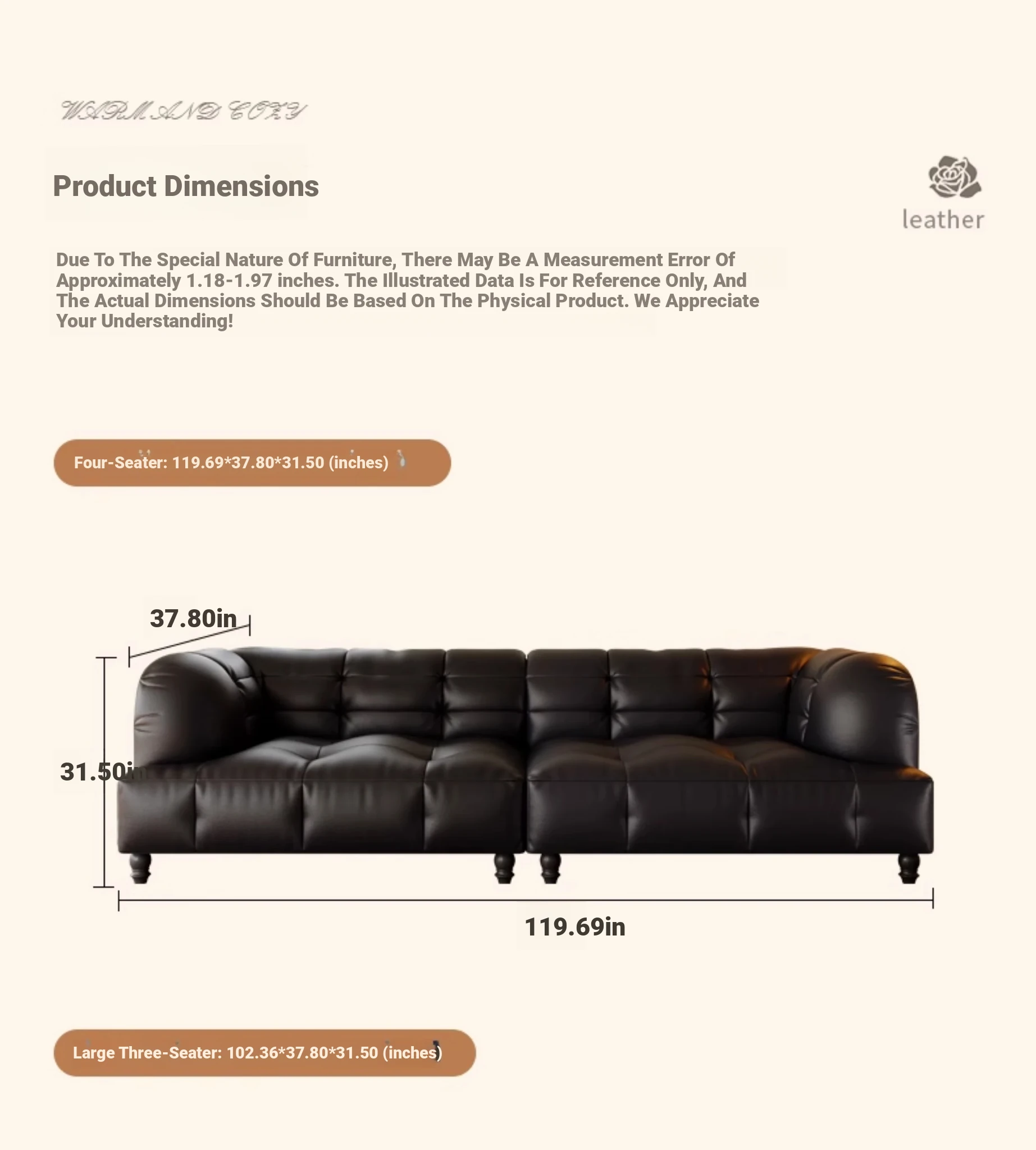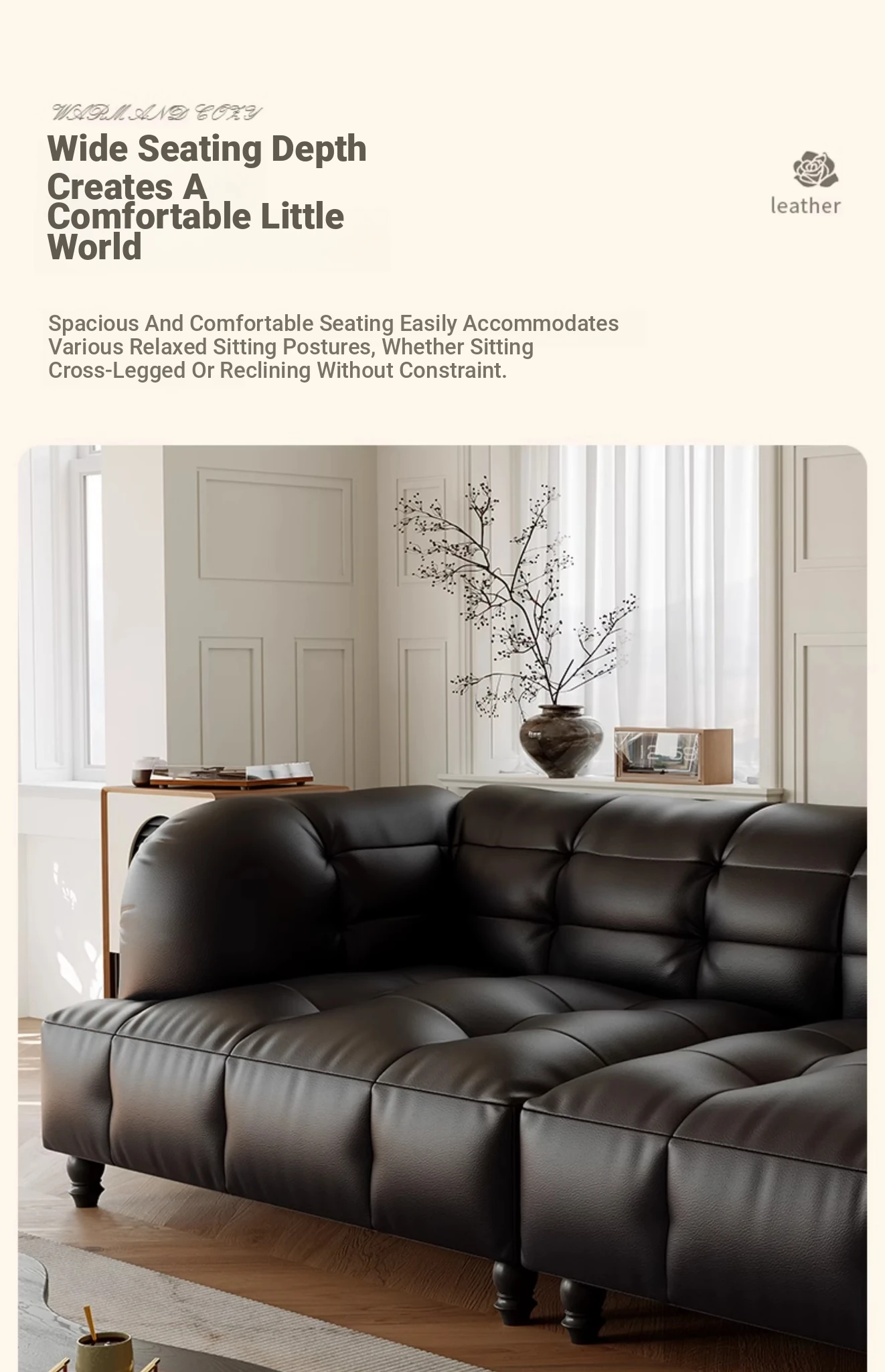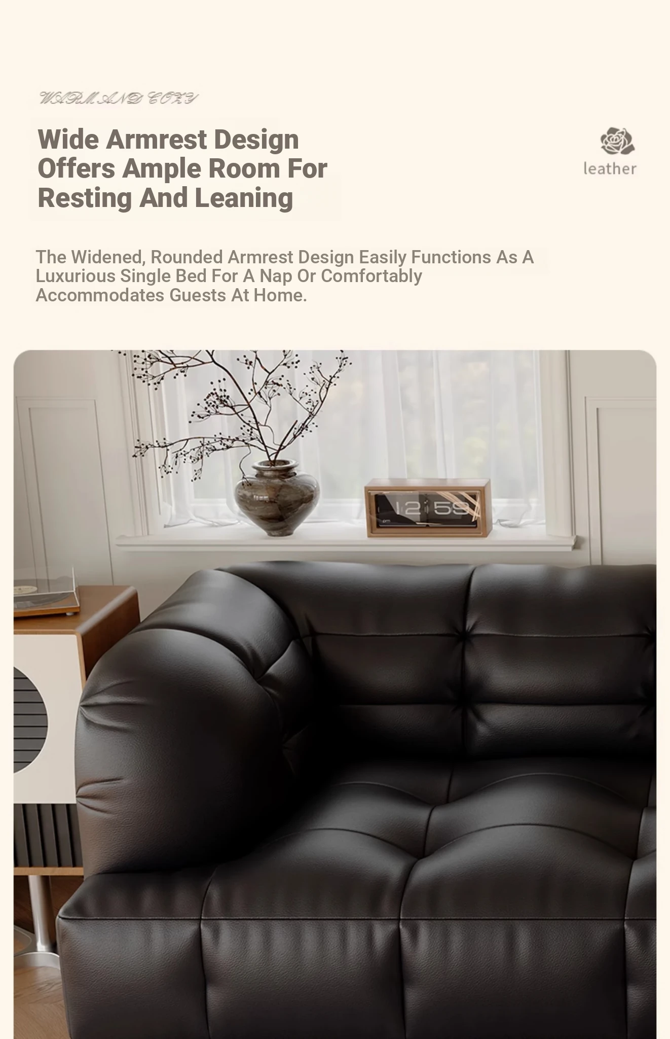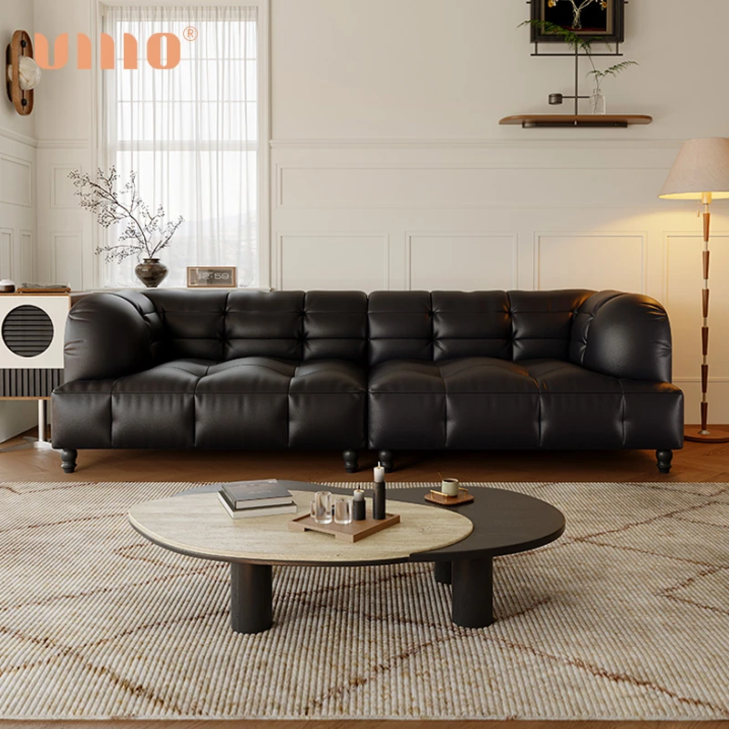 ULLLO French Vintage High-Leg Sofa - Luxurious Four-Seater Genuine Leather Sofa with Original American Design for Your Living Room