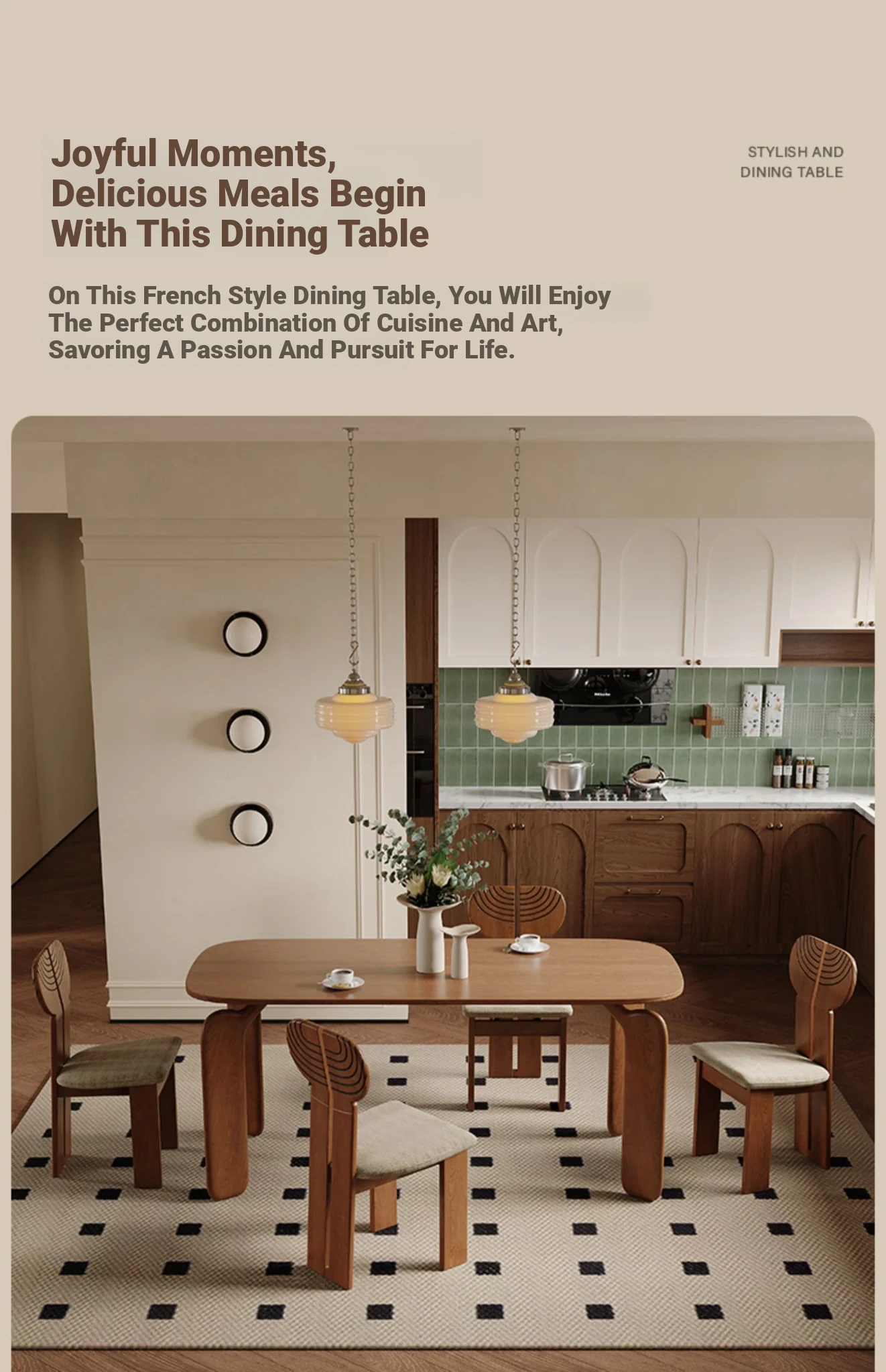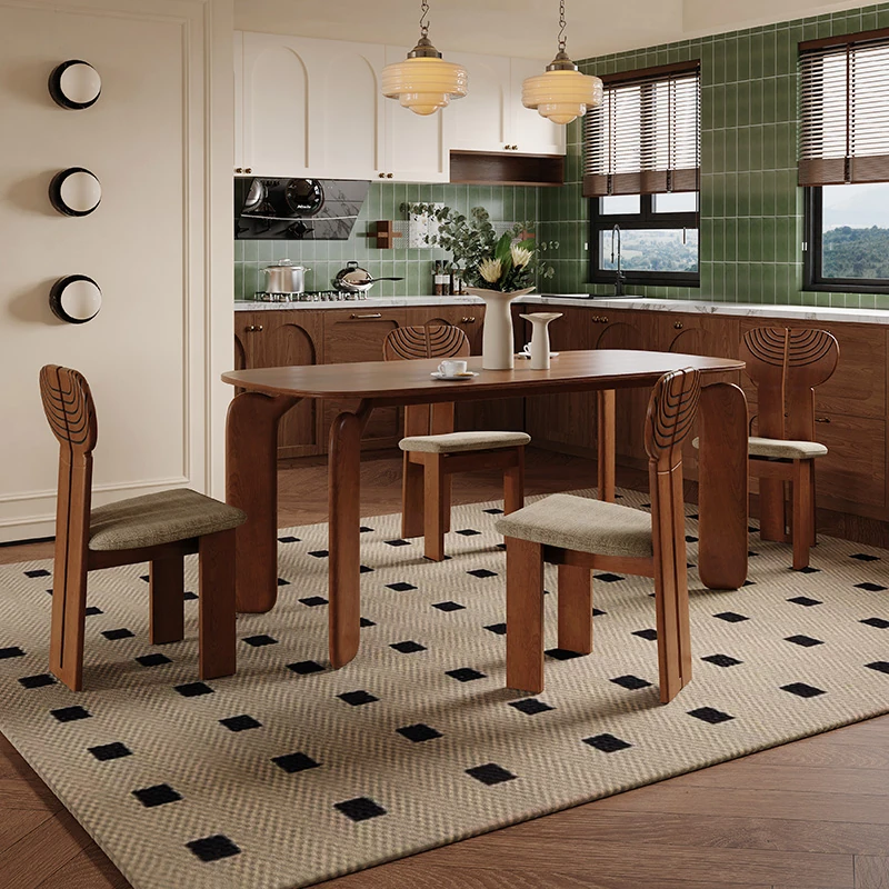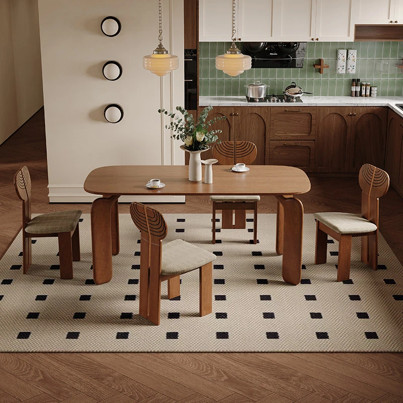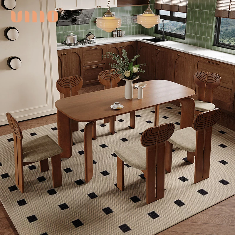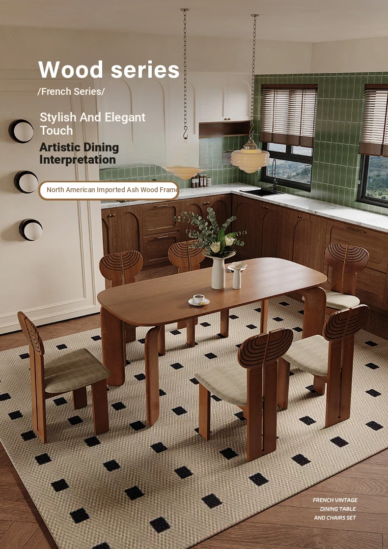 ULLLO French Vintage Solid Wood Dining Table - Compact Rectangular Ash Wood Table for Home, Perfect for Small Spaces, Elegant and Durable