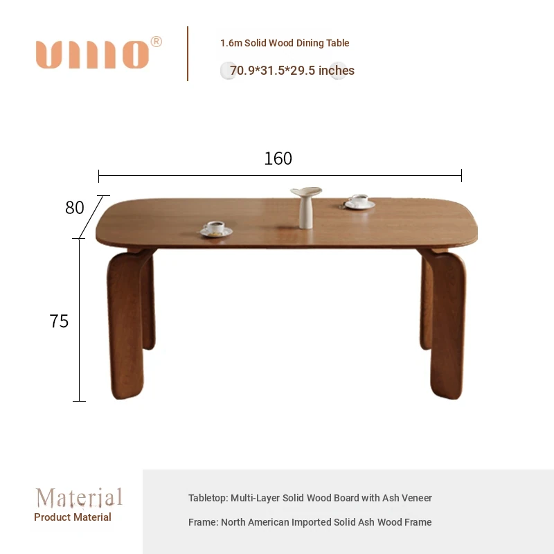 Solid wood dining table 70.87 ins