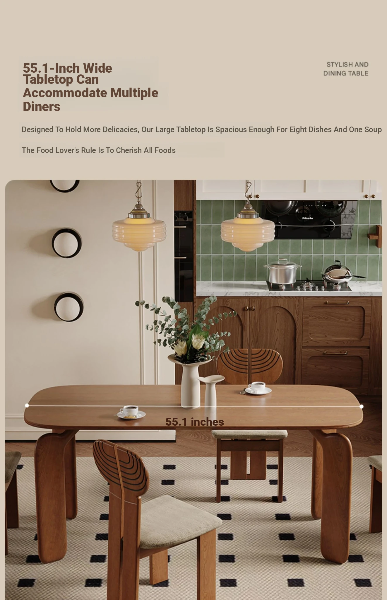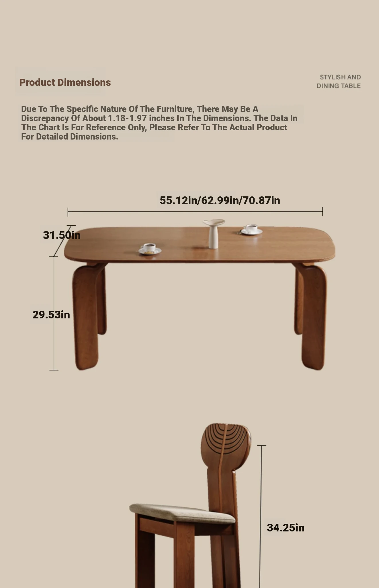 Solid wood dining table 62.99 ins