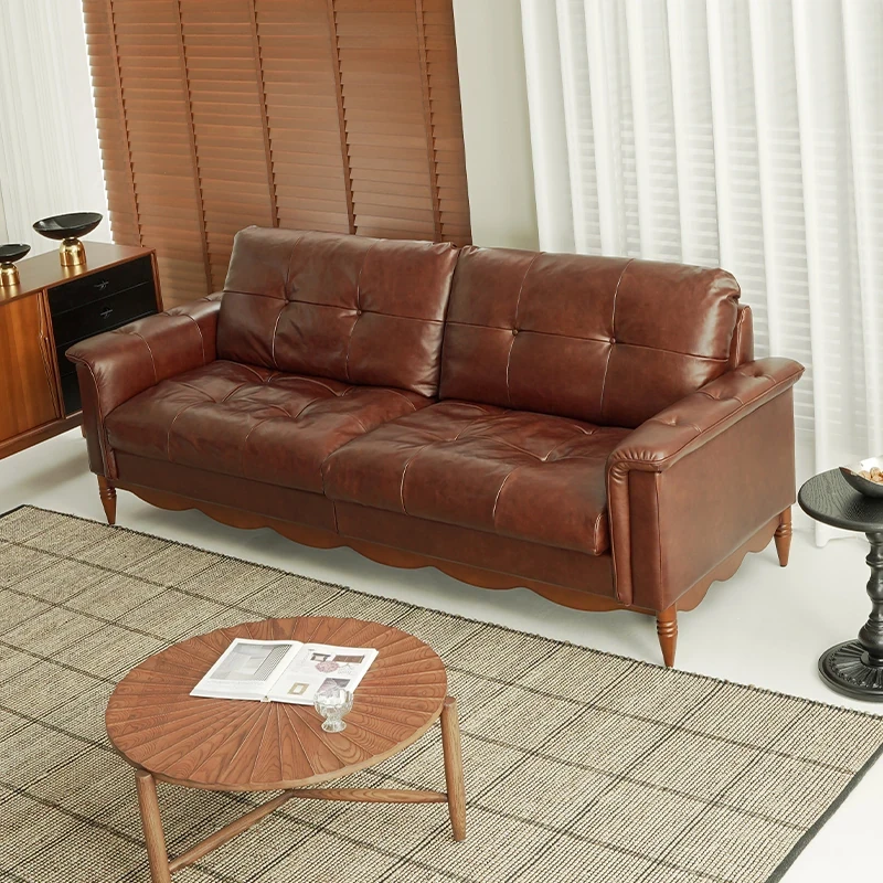 【ULLLO】フレンチヴィンテージ本革ソファ 〜古風スタイルでリビングに彩りを!〜 ブルックリンデザインの2024年最新モデル、小スペースにも最適
